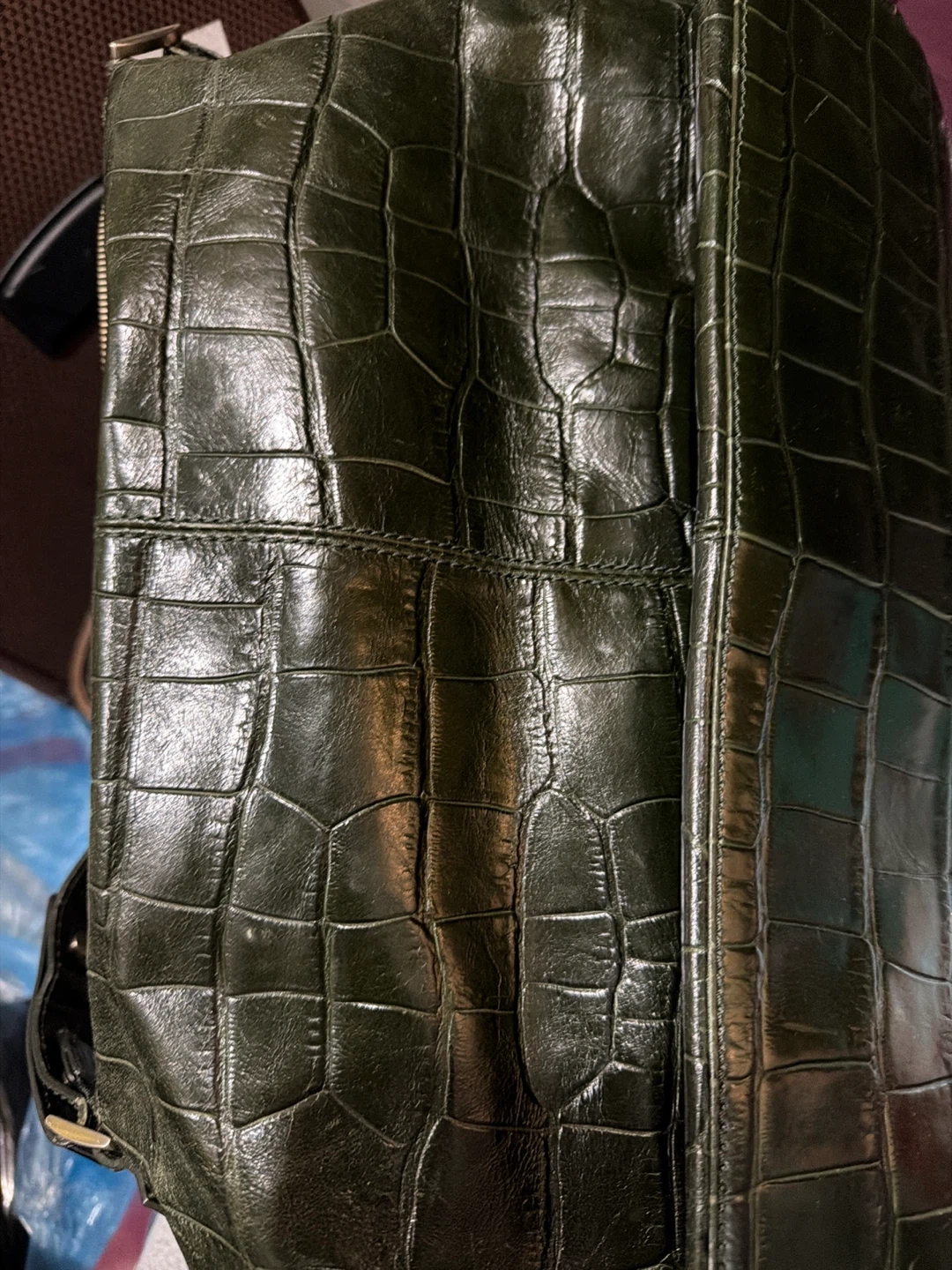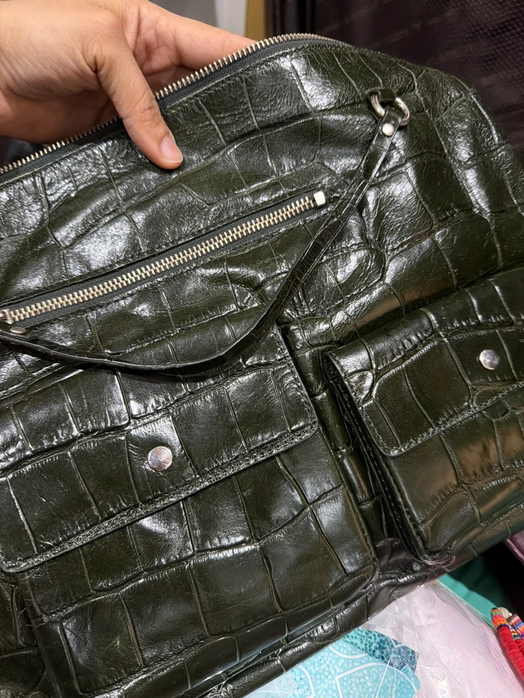 Maxximum Dark Green Alligator Print Shoulder Bag