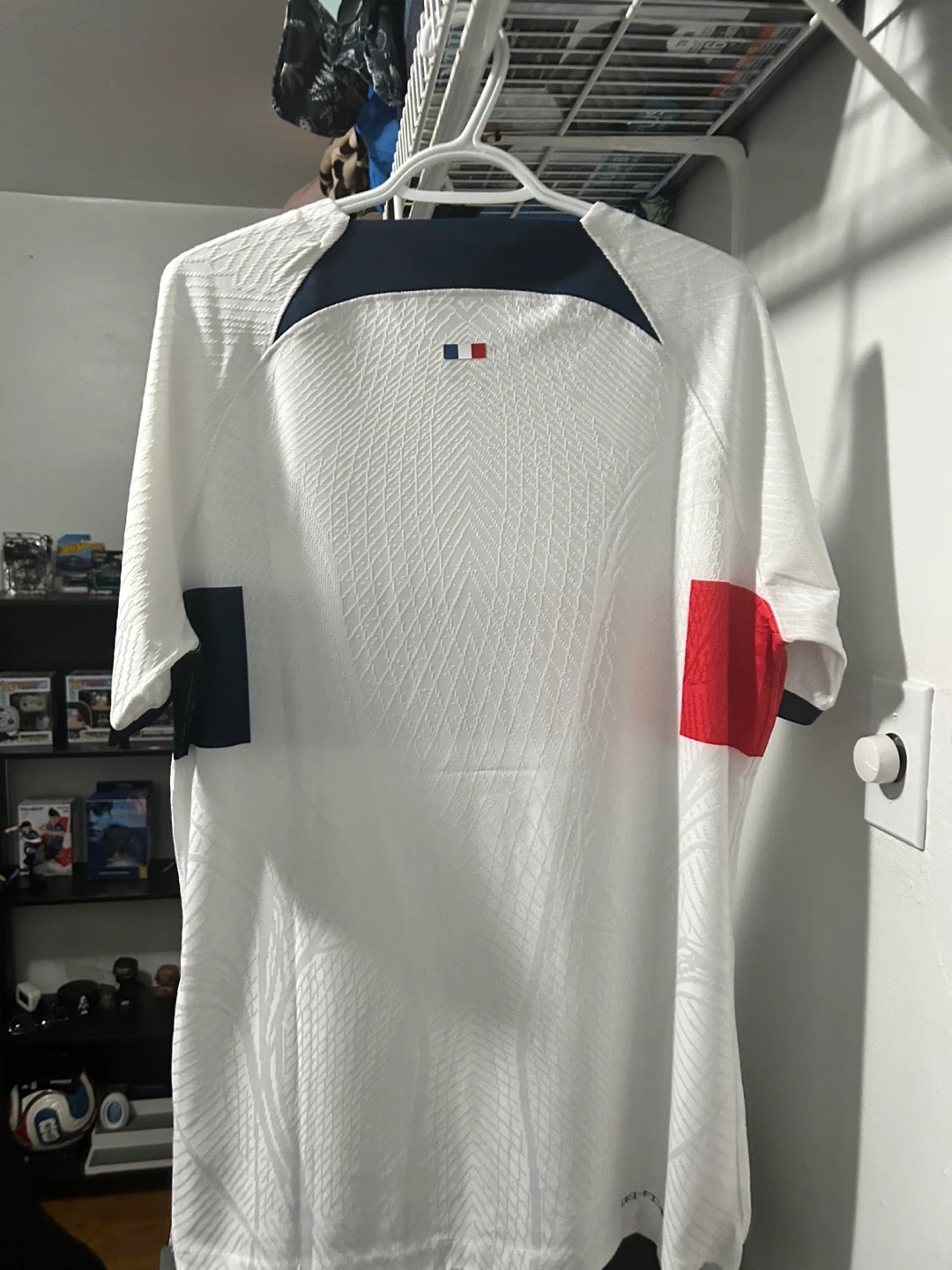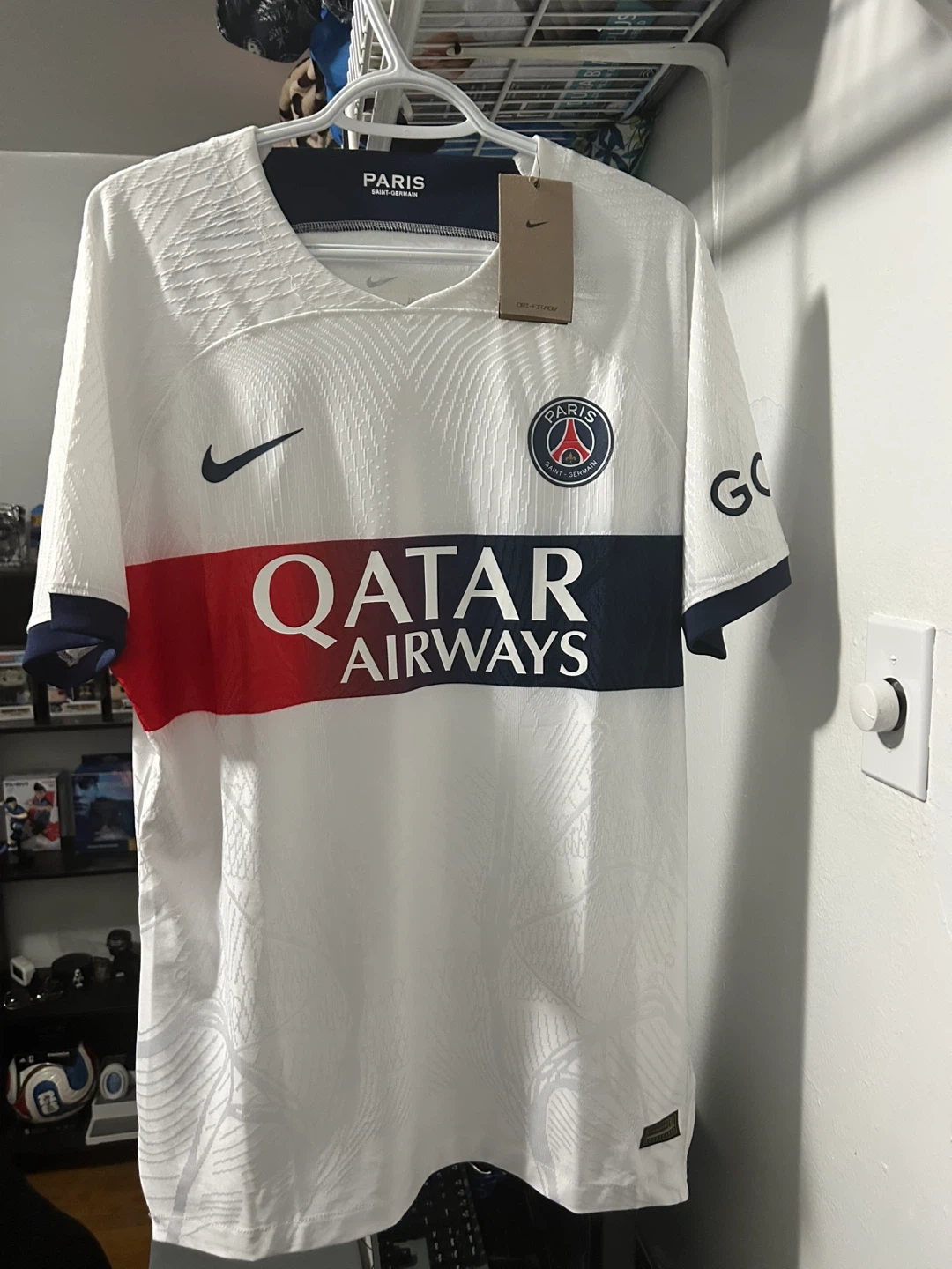 Selling a brand new Paris Saint-Germain jersey by Nike! It's white with the Qatar Airways logo and the PSG emblem. Perfect for any fan!