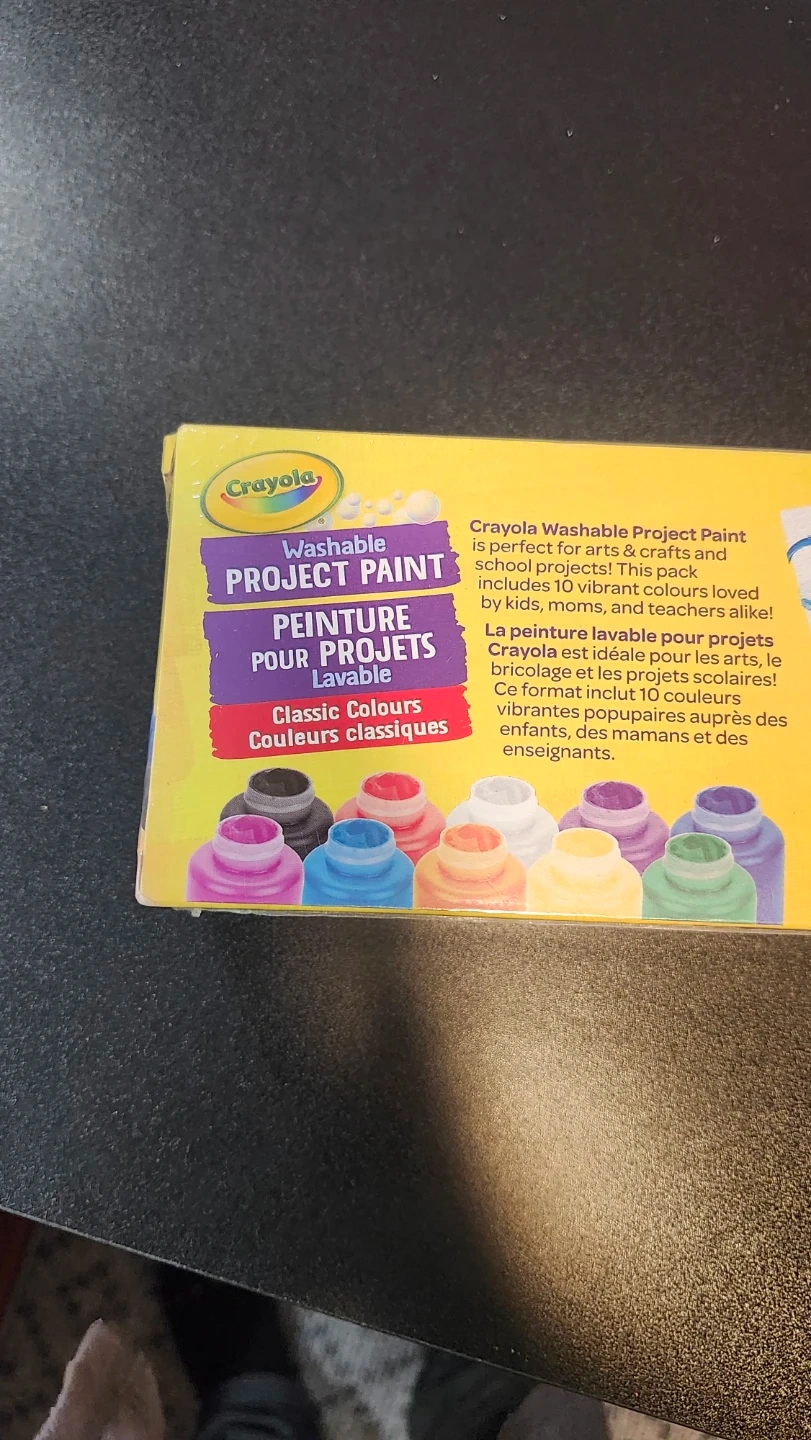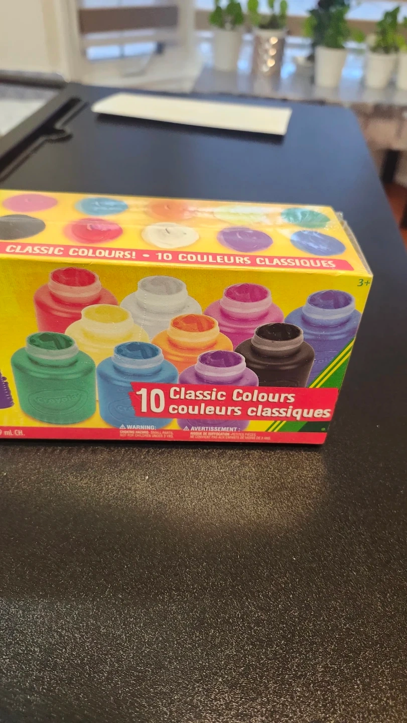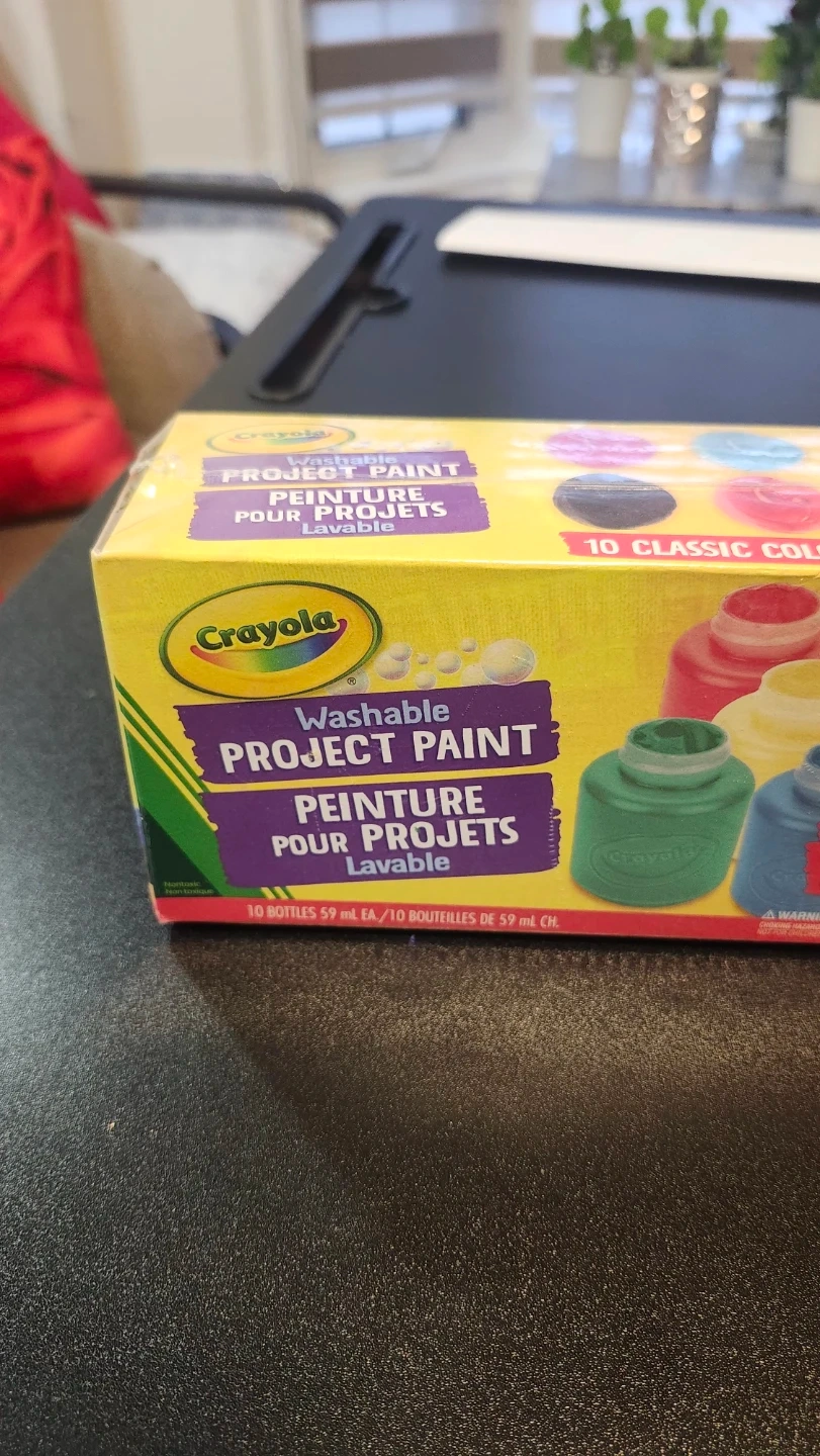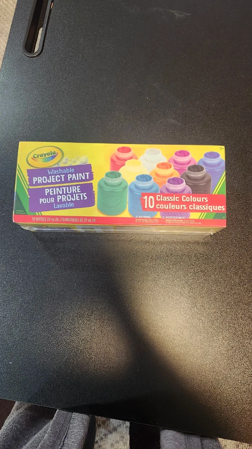 Selling a brand new box of Crayola Washable Project Paint! This set includes 10 classic colours, perfect for arts and crafts projects. Each bottle contains 59 mL of paint. Great for kids, moms, and teachers alike!