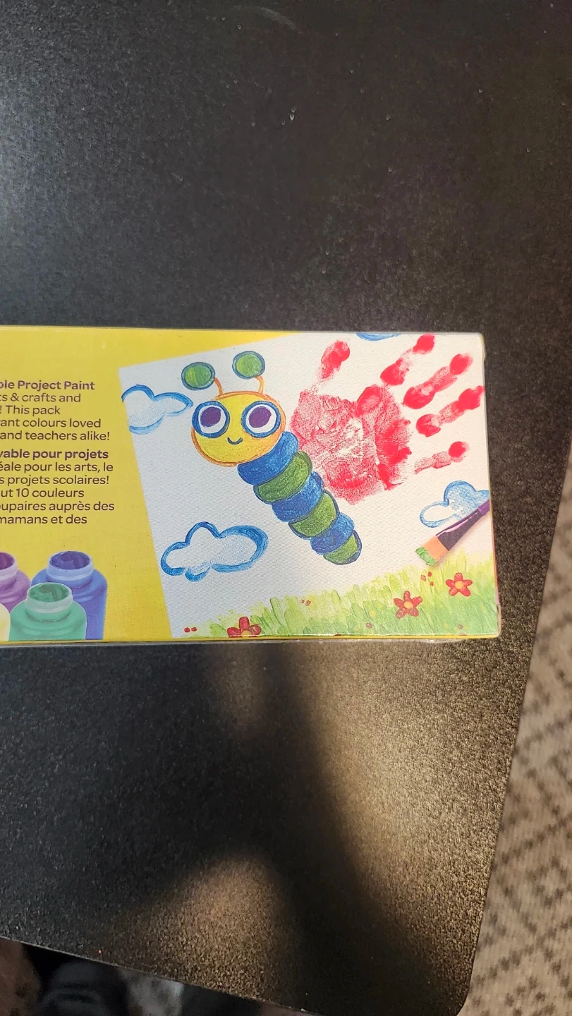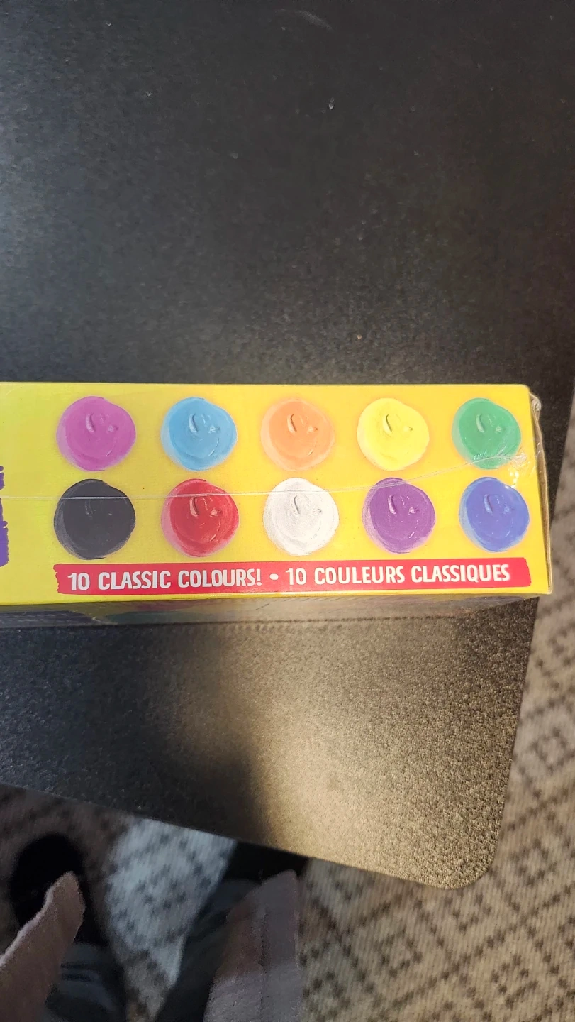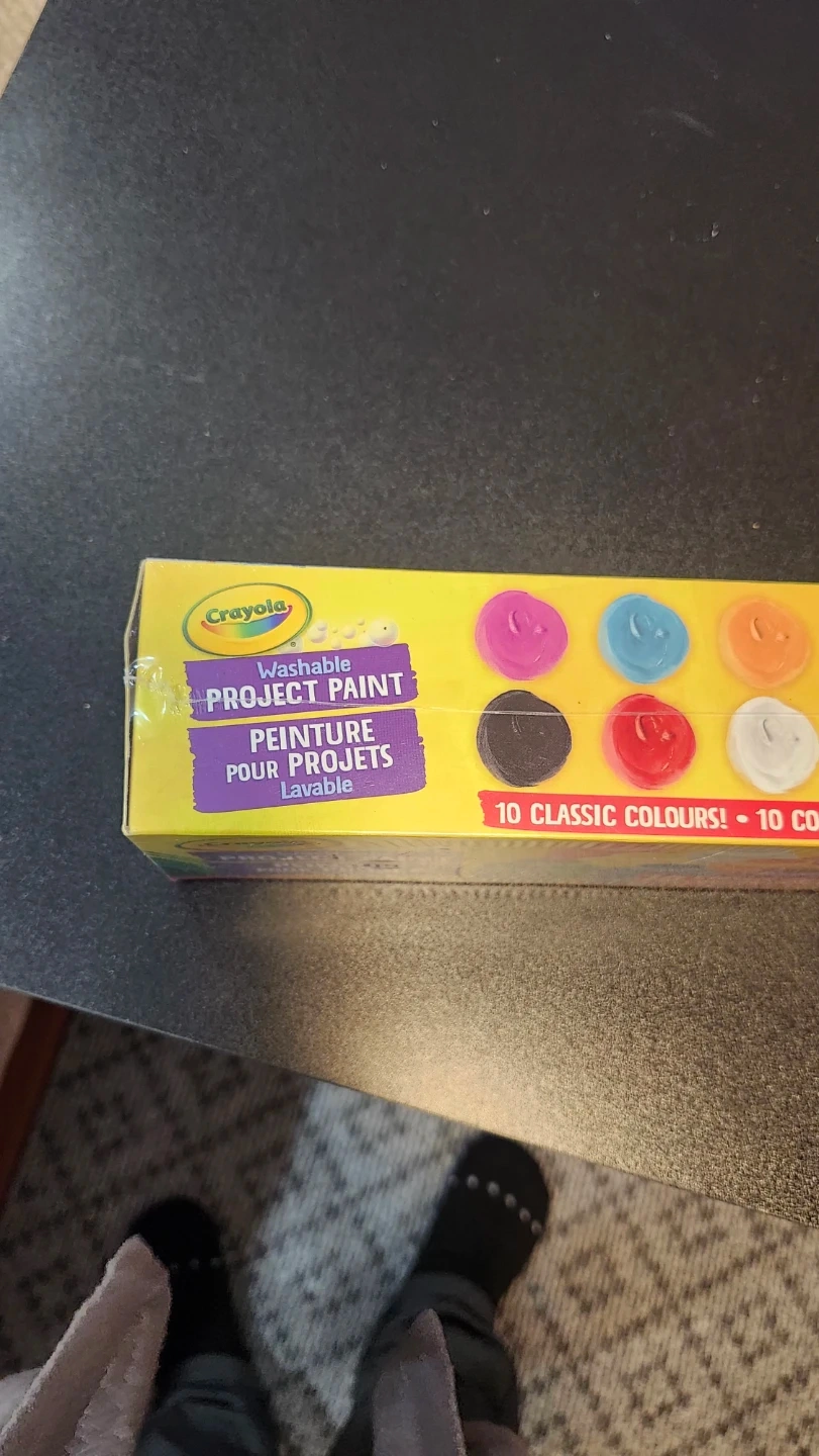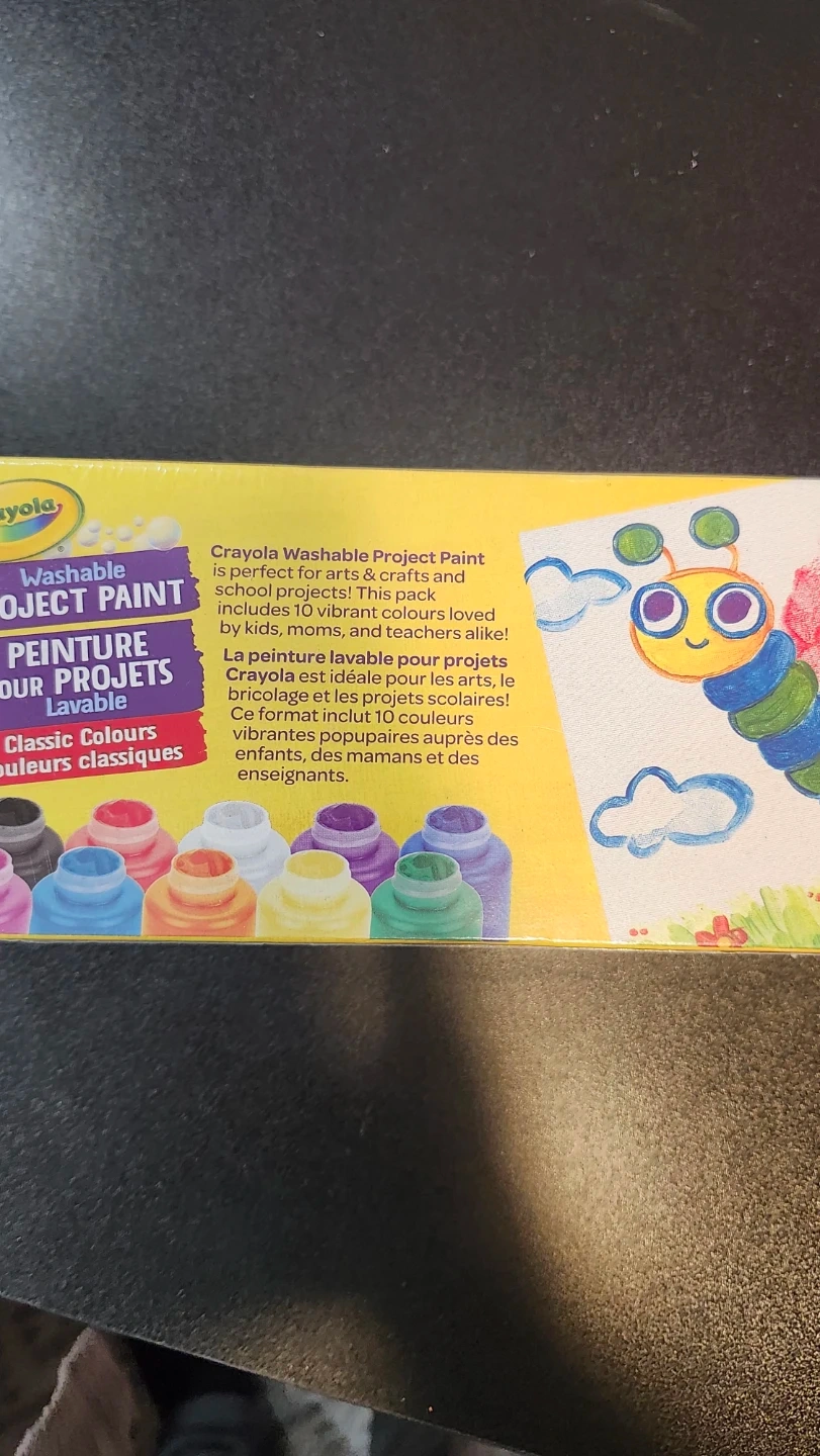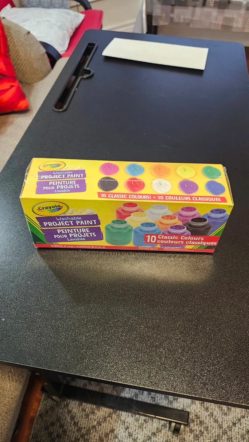 Selling a brand new box of Crayola Washable Project Paint! This set includes 10 classic colours, perfect for arts and crafts projects. Each bottle contains 59 mL of paint. Great for kids, moms, and teachers alike!