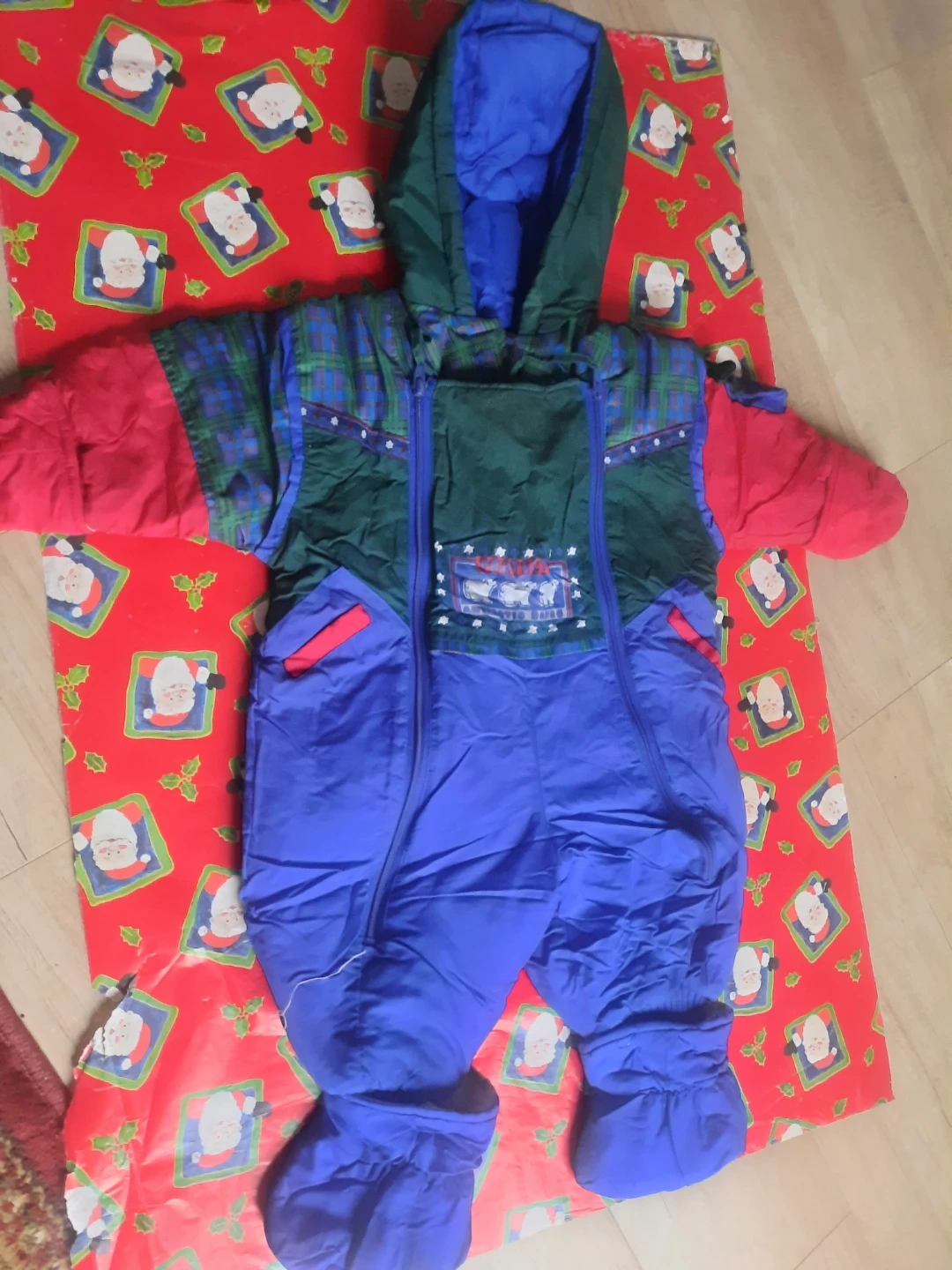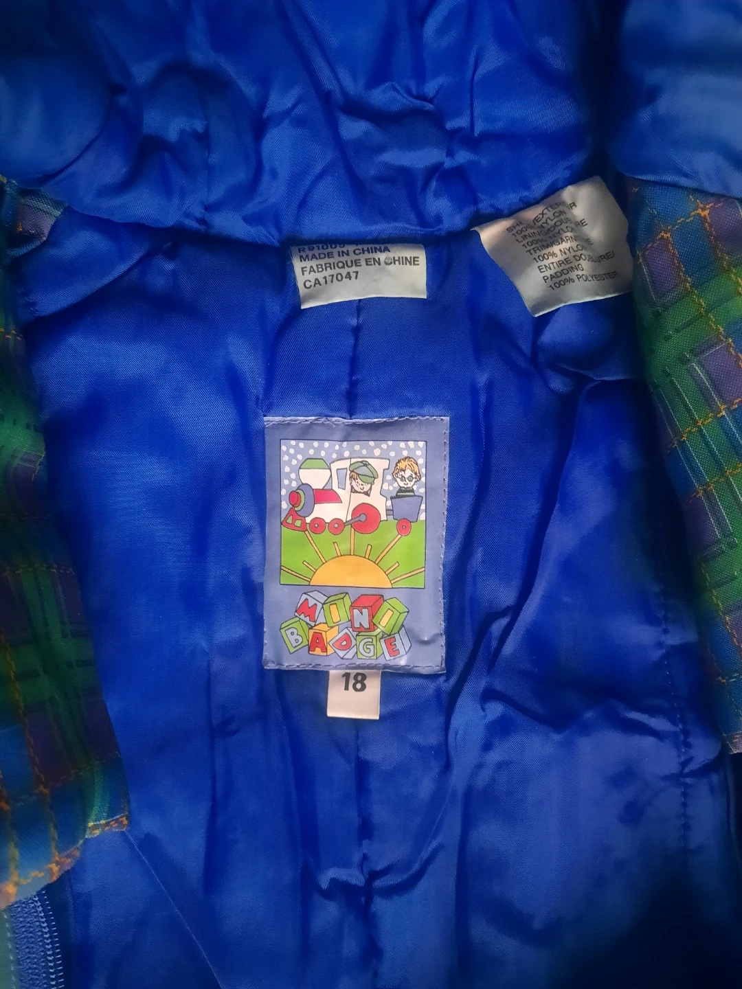 Keep your little one warm this winter with this adorable Mini Badge baby snowsuit! It features a cozy hood, detachable mittens & booties to keep them snug from head to toe. The snowsuit is in great condition and ready for snowy adventures!
