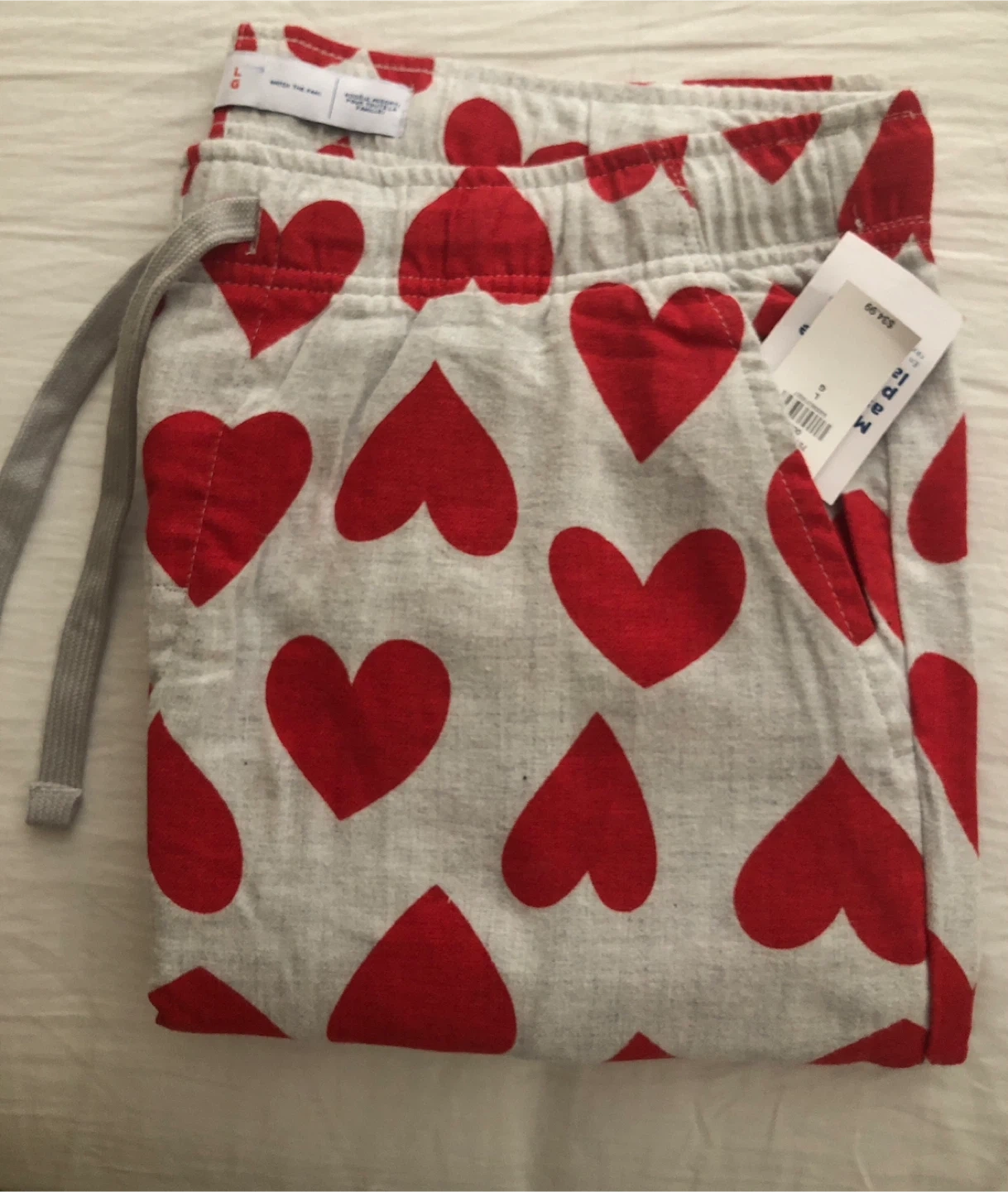 *New Pajama pants with a red heart pattern, 2 pocket , perfect for lounging or sleeping $15
