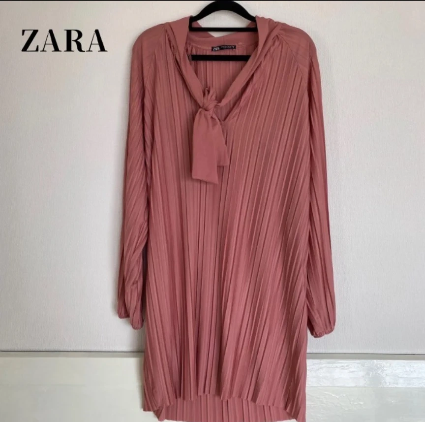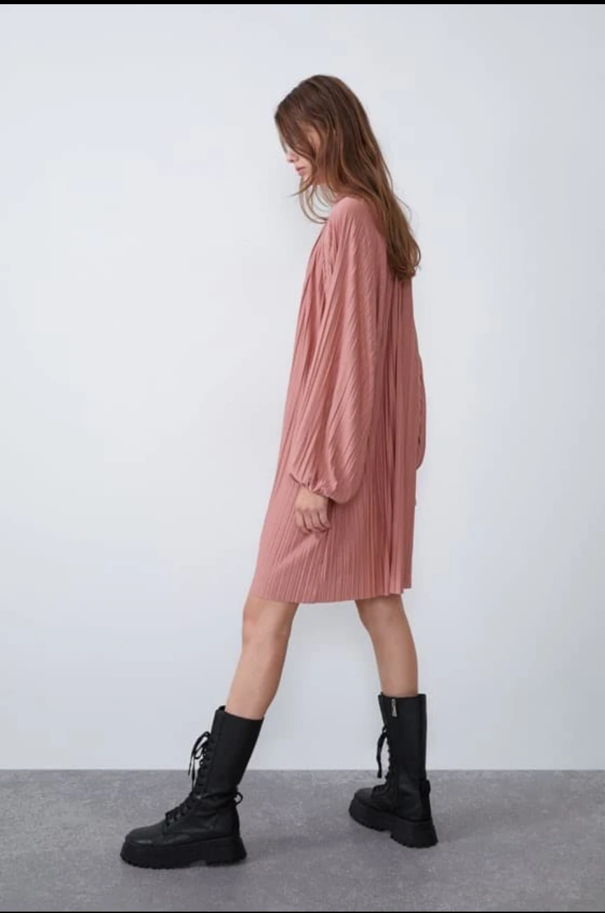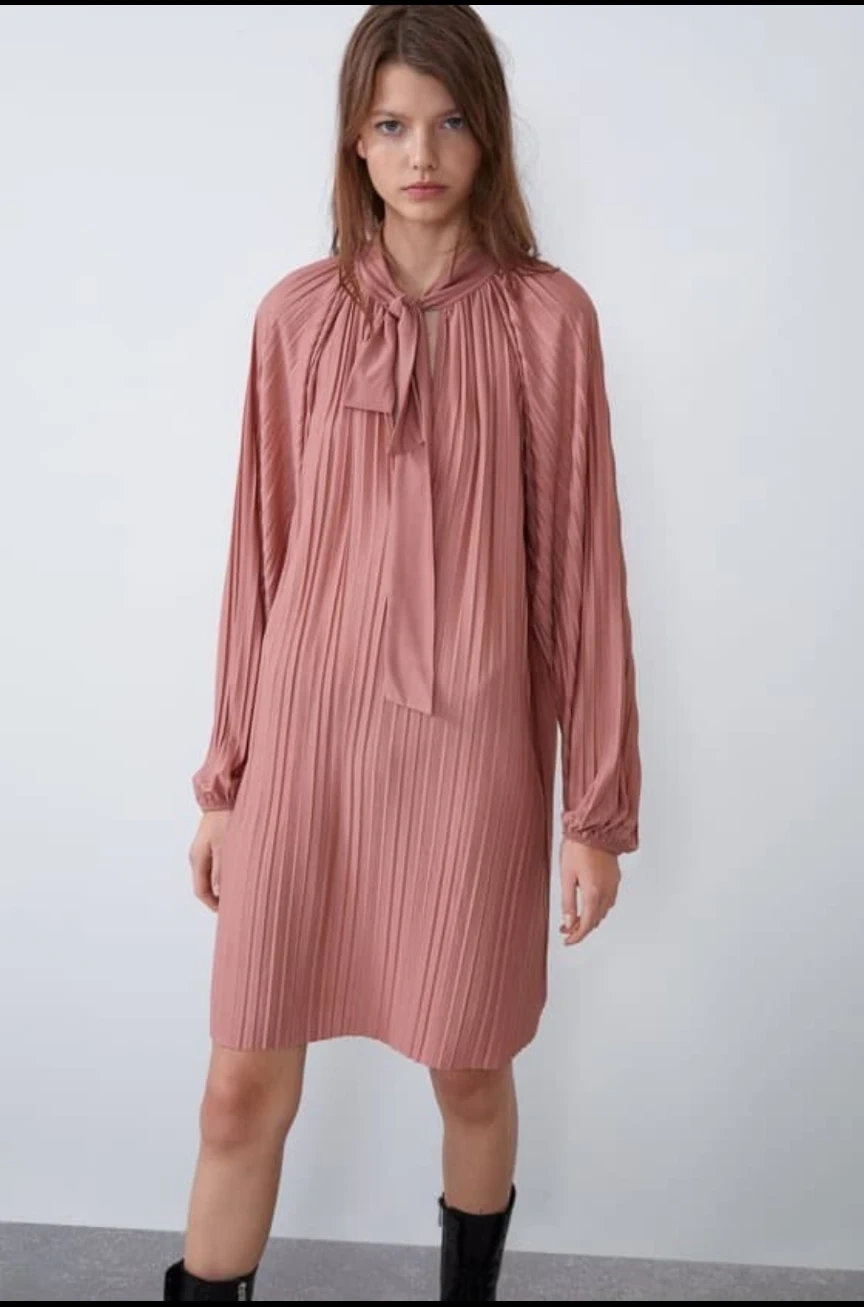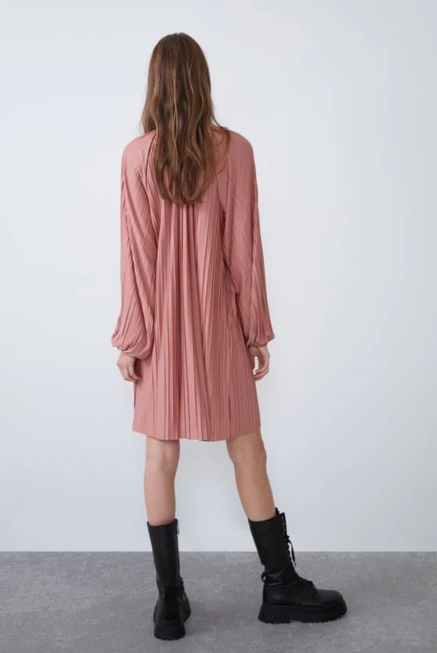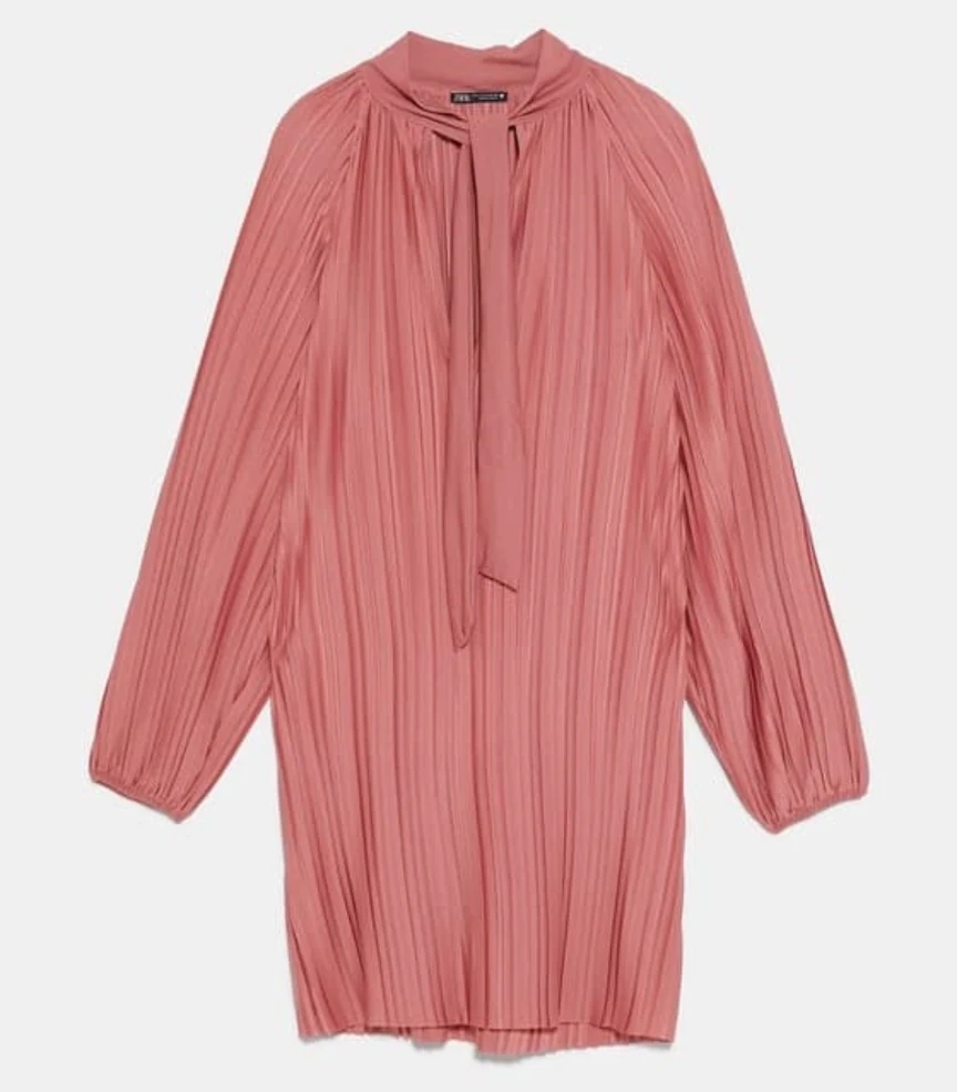 Zara Pink Pleated Tie-Neck Mini Dress