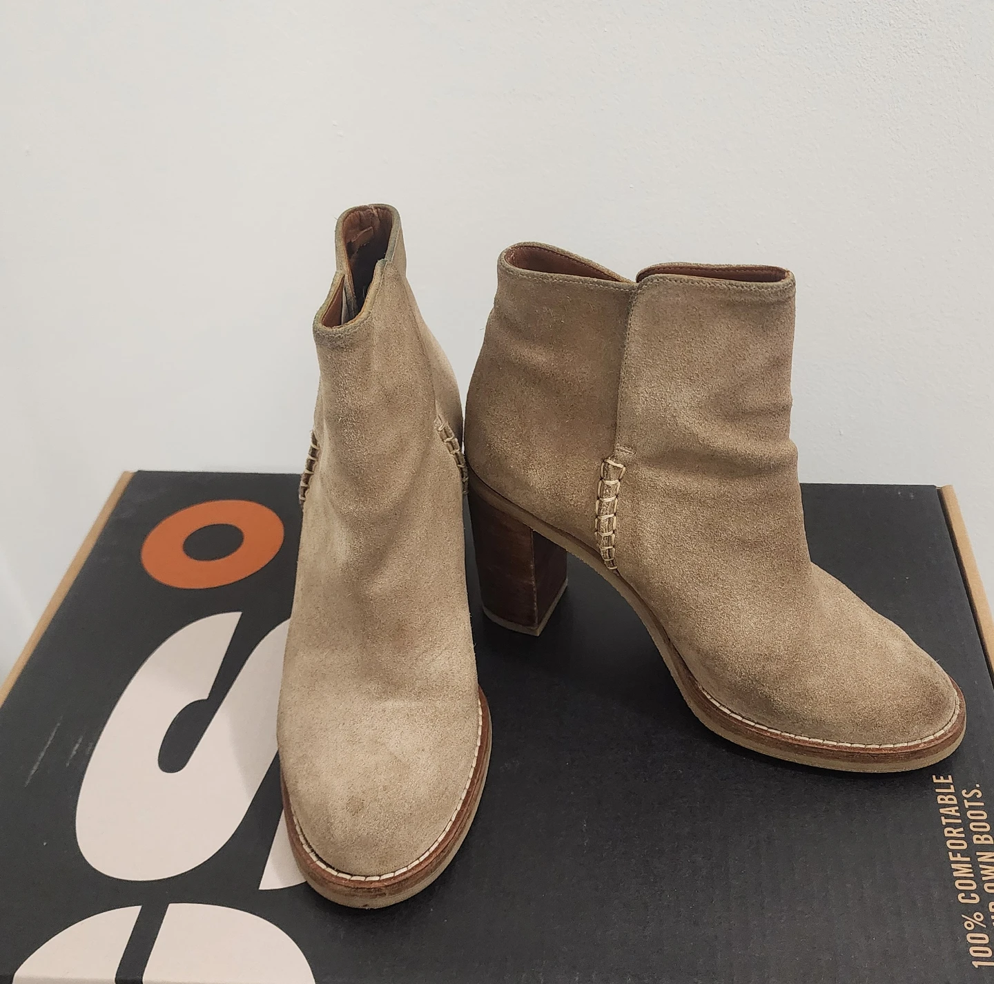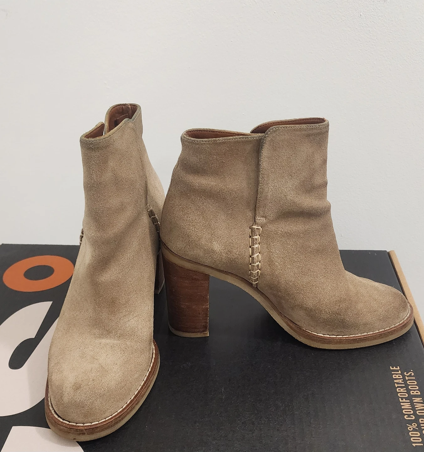 Selling a pair of OGGO heeled ankle boots in a lovely suede material! The size is EU 38. These stylish boots are perfect for adding a touch of elegance to any outfit