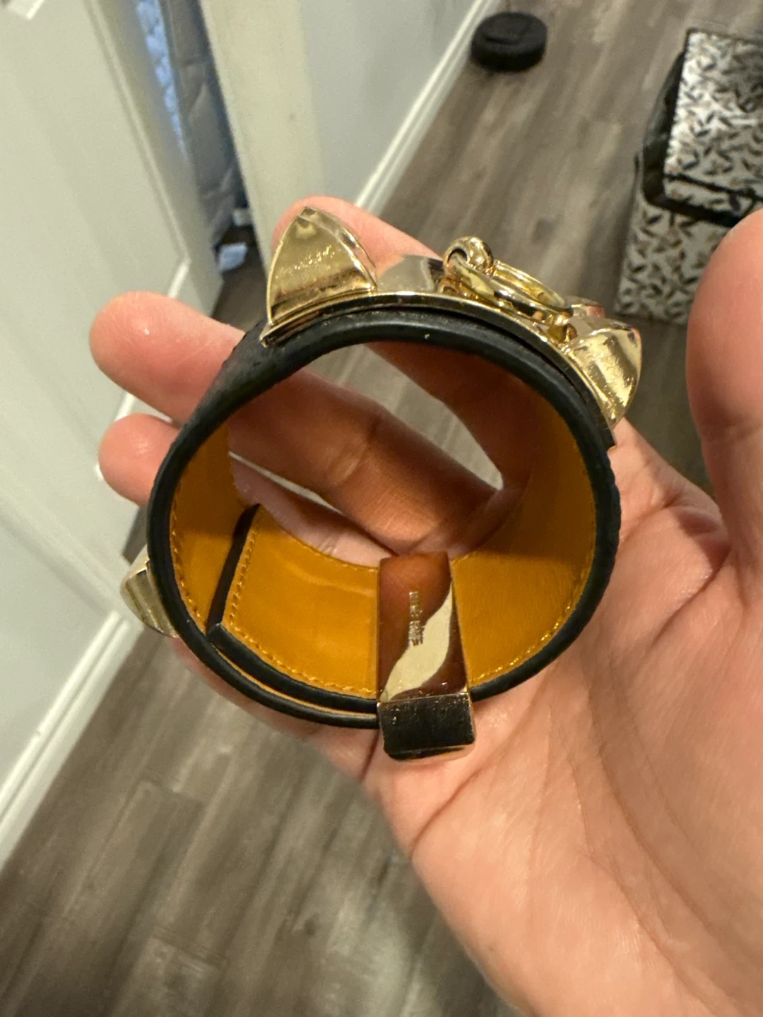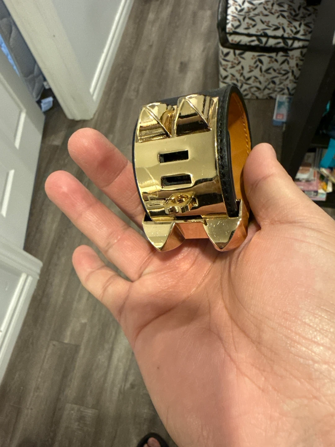 Selling a beautiful Hermès Collier de Chien (CDC) bracelet. This stylish accessory features a distinctive design with gold-tone hardware and black leather. It's a statement piece that adds a touch of luxury to any outfit!