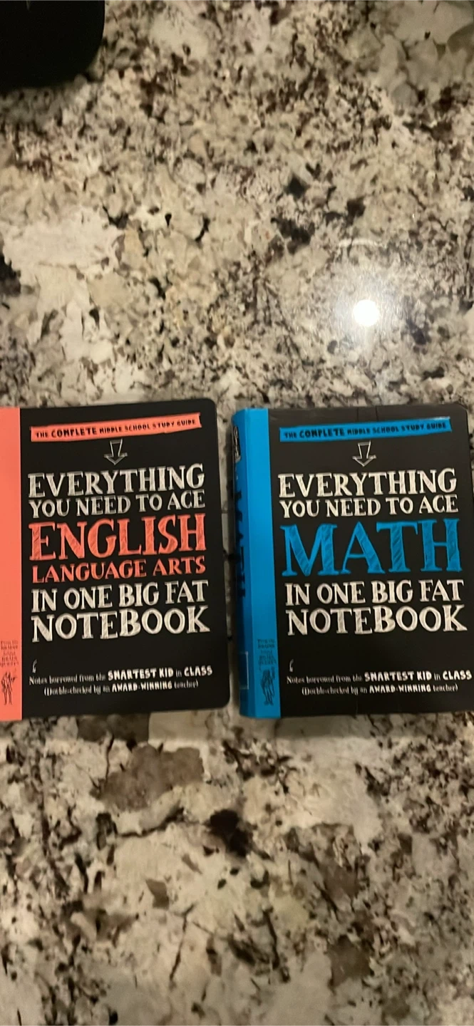 Selling two study guides: one for English Language Arts and one for Math. They're part of the 'Everything You Need to Ace In One Big Fat Notebook' series. Perfect for middle school