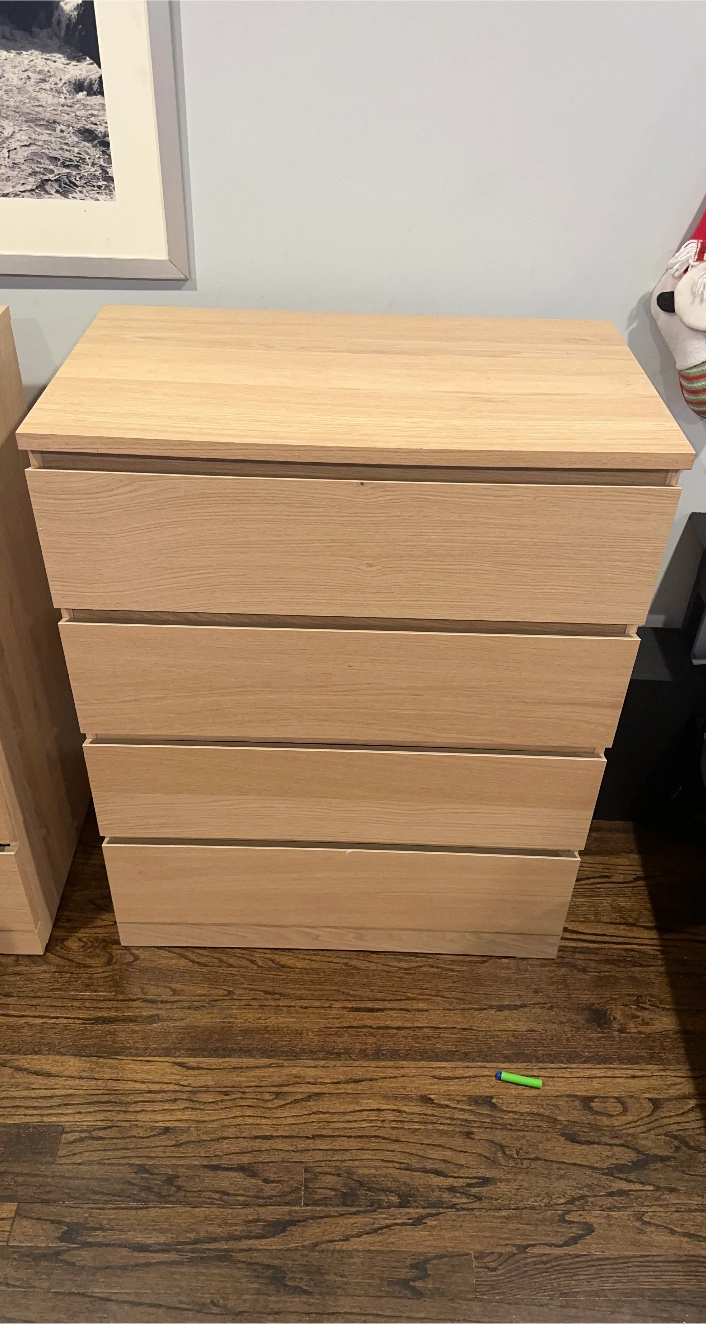 Selling a gently used IKEA Hemnes 4-drawer chest. It's in great condition and perfect for adding storage to any room. The light brown color is neutral and will fit with many decor styles. This dresser is sturdy and has plenty of space for clothes or other items.