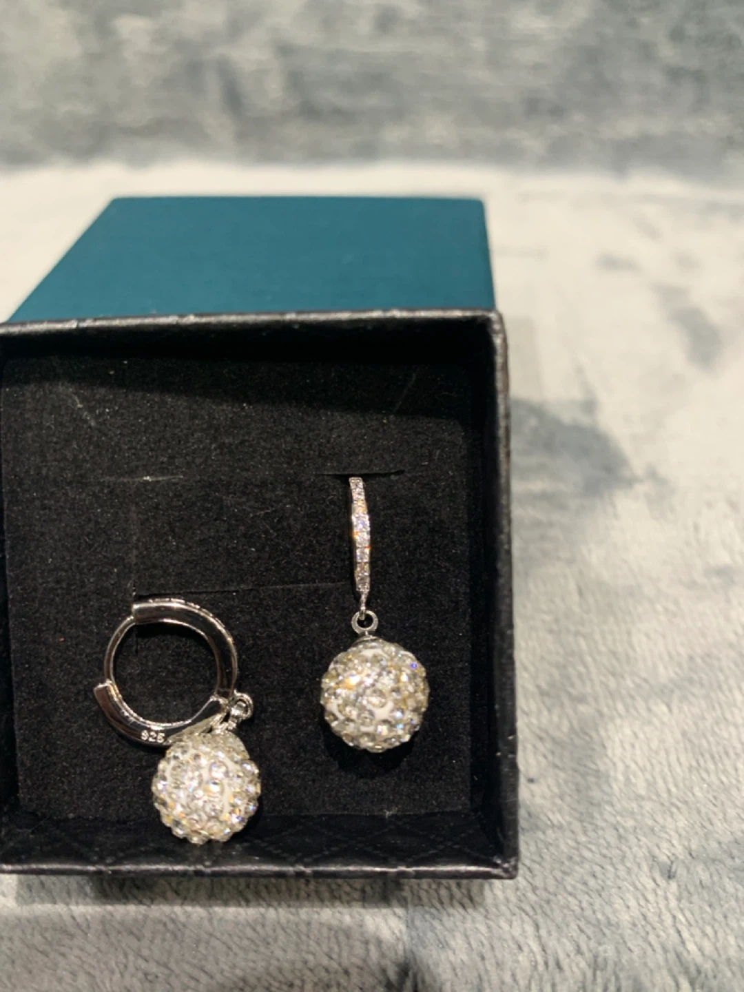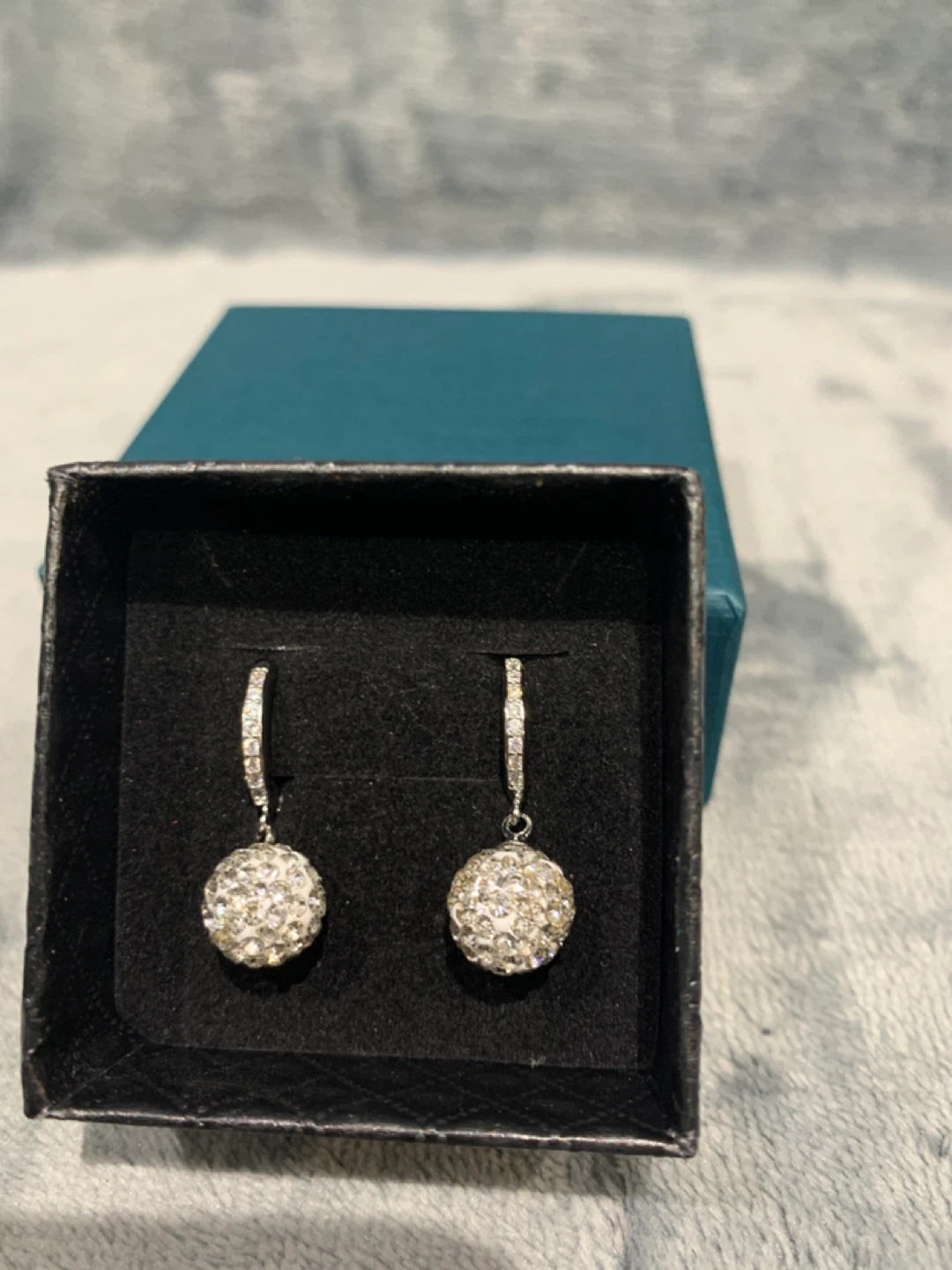 Selling a pair of crystal ball drop earrings. They're in great condition and come with the original box. These earrings are a beautiful addition to any jewelry collection!