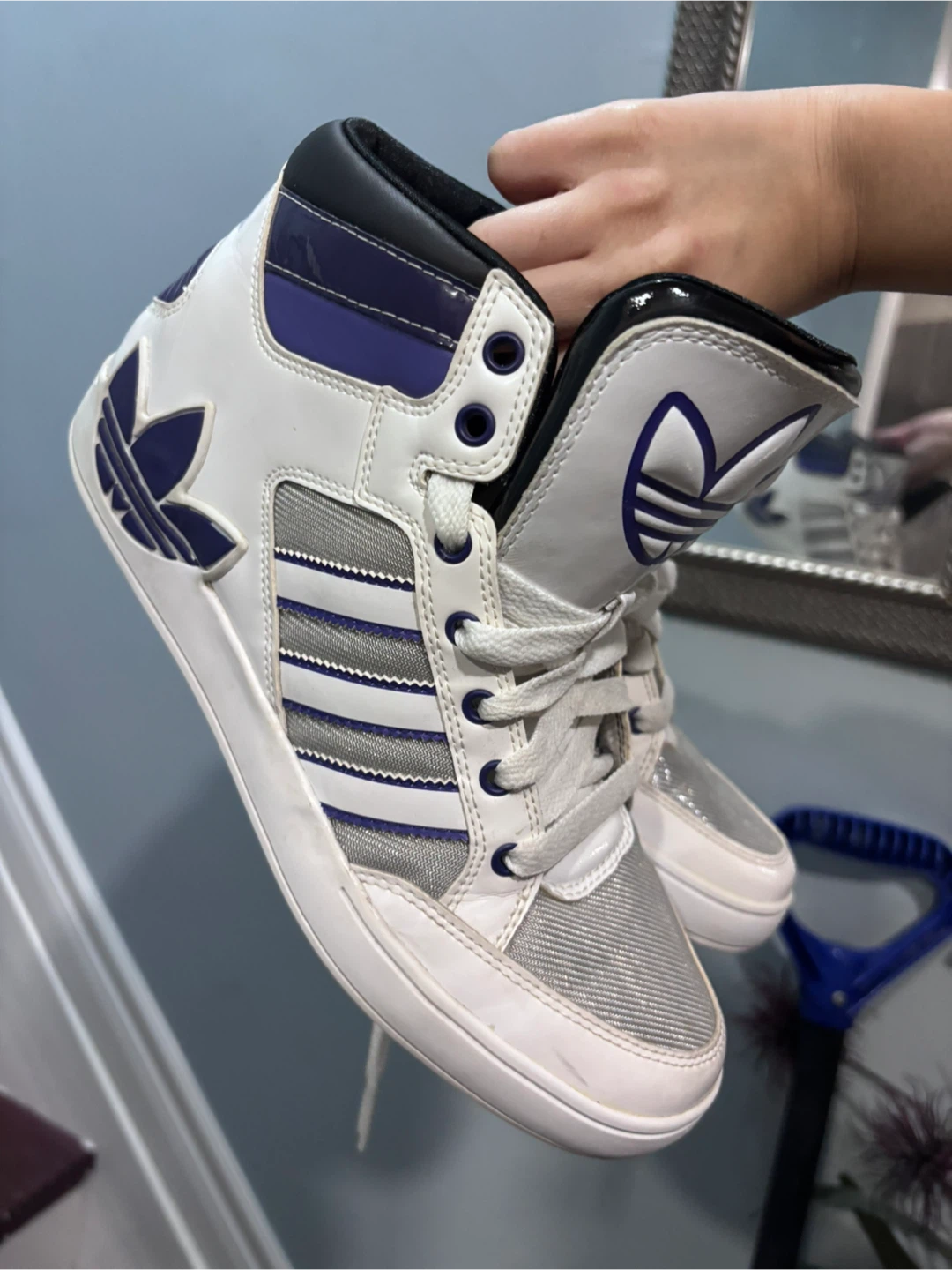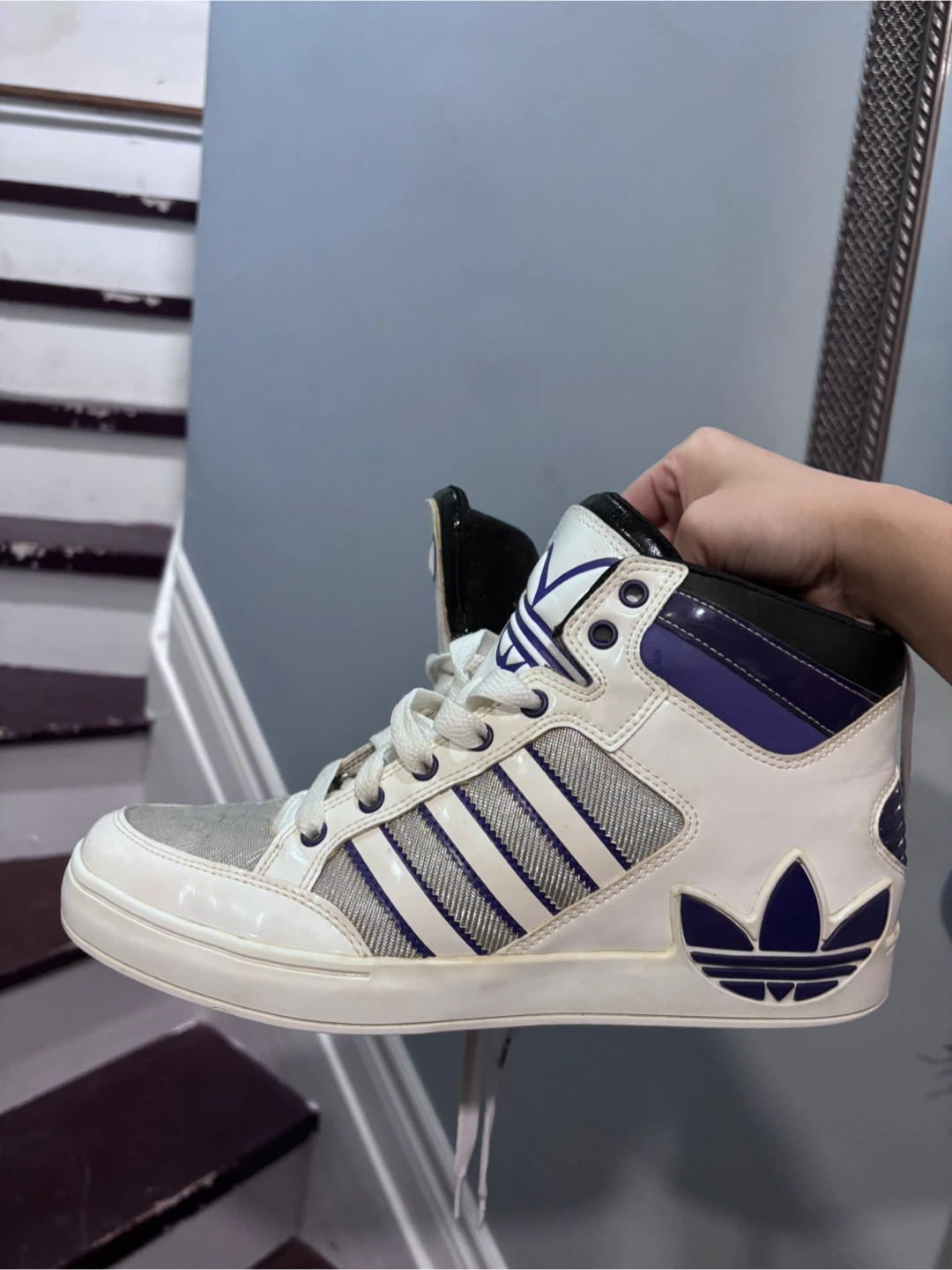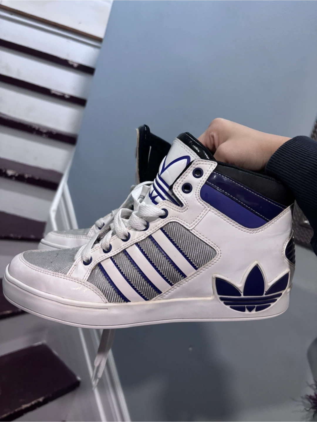 1 / 51 / 5Buy & SellAdidas High Top Sneakers, White & PurpleAdidas High Top Sneakers, White & Purple$50Selling a pair of Adidas high top sneakers in white and purple! They're in great shape and ready for a new ownerConditionGoodSize9BrandAdidasWHERE TO MEETAirport Road & Sandalwood Parkway EastView MapSELLERverifiedAnnSandringham Wellington1859 reviews0 chats·0 favorites·14 viewsSEND CHAT TO SELLERHi Ann! I’m interested in your listing.Hi Ann! I’m interested in your listing.Get the Karrot app to chatSign In to chat