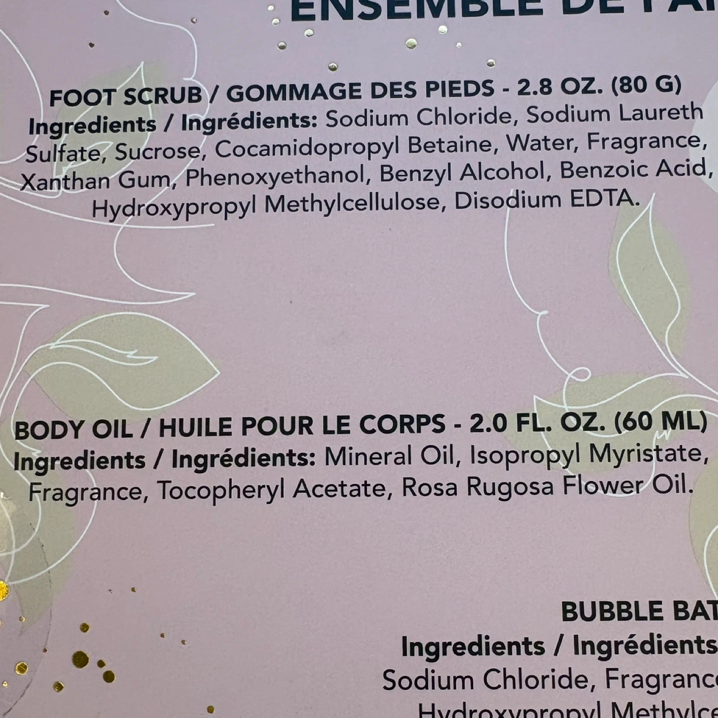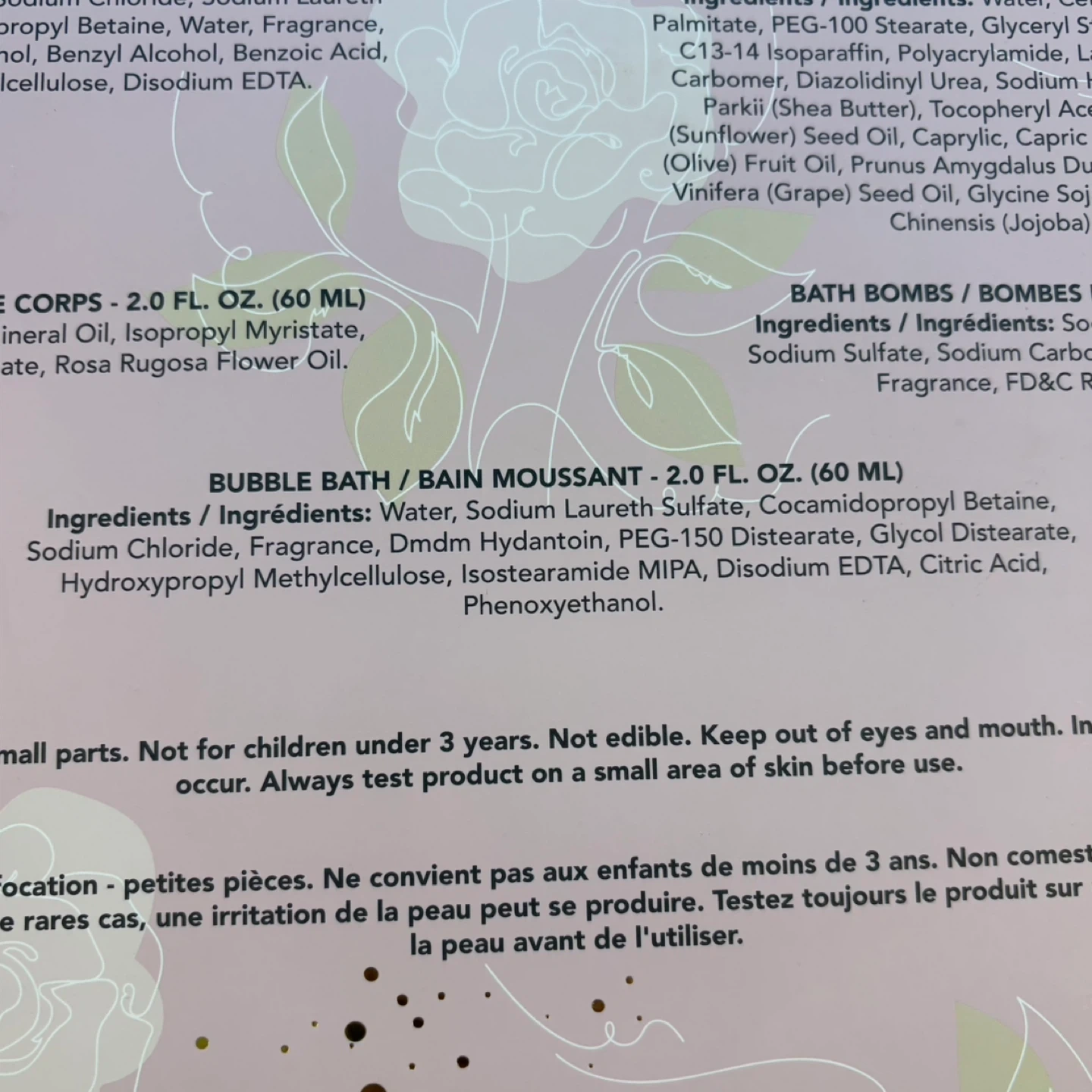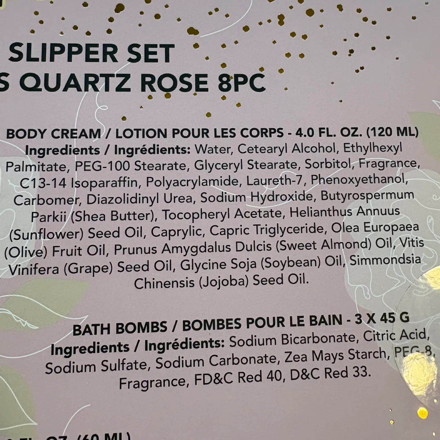 Material: Faux Fur Slippers, Various Bath Ingredients