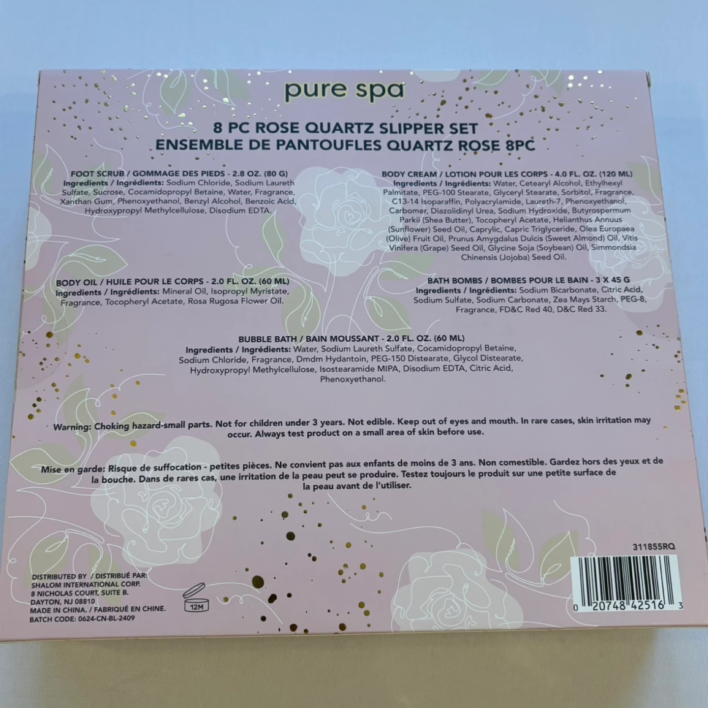Pure Spa Rose Quartz 8 Piece Slipper Gift Set Energize