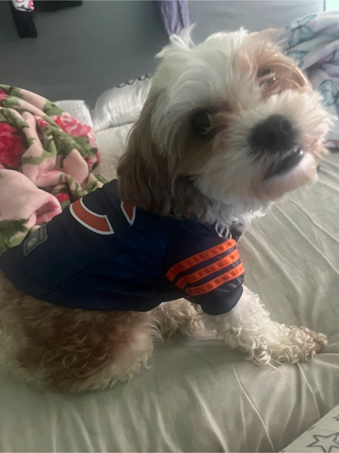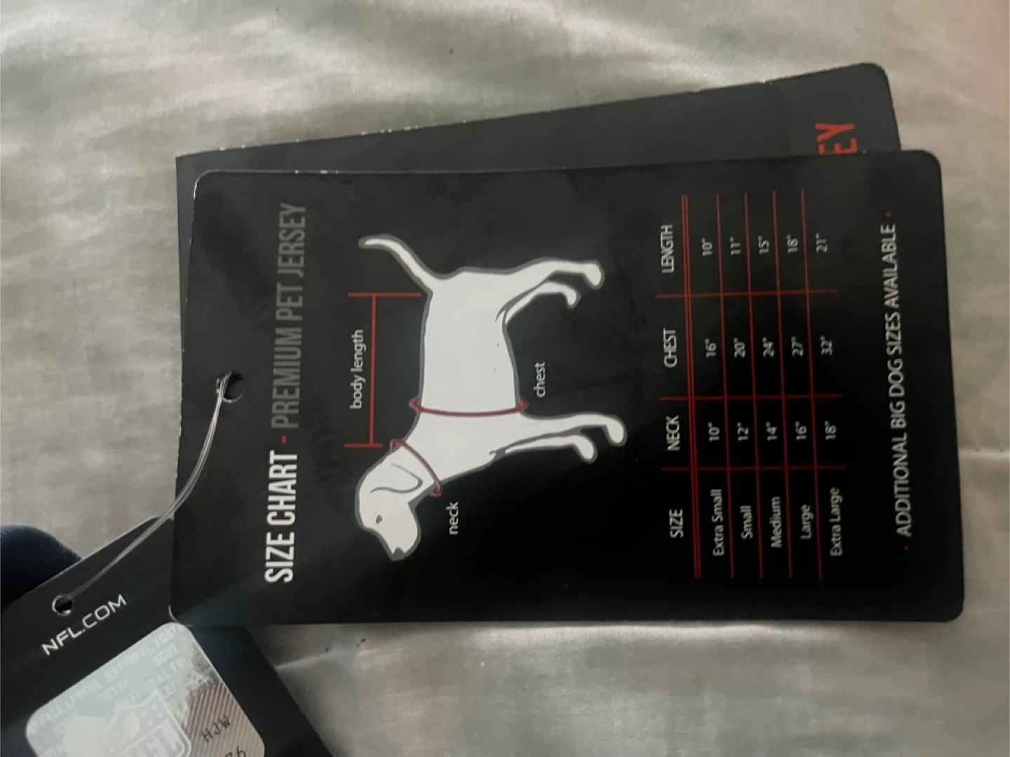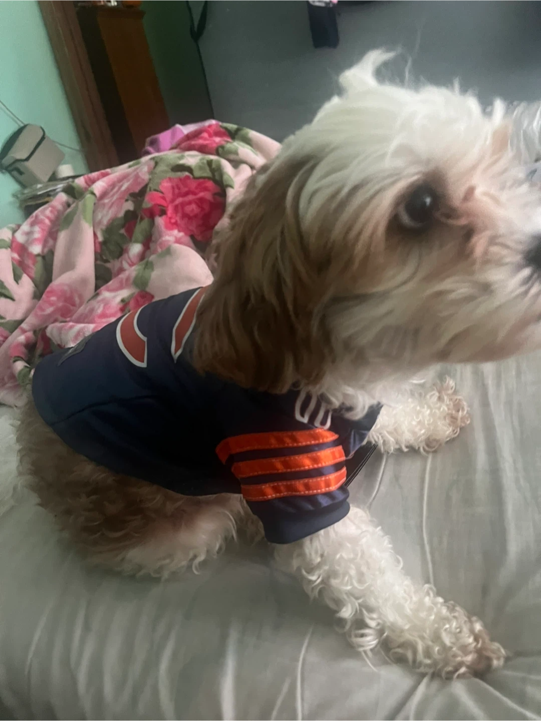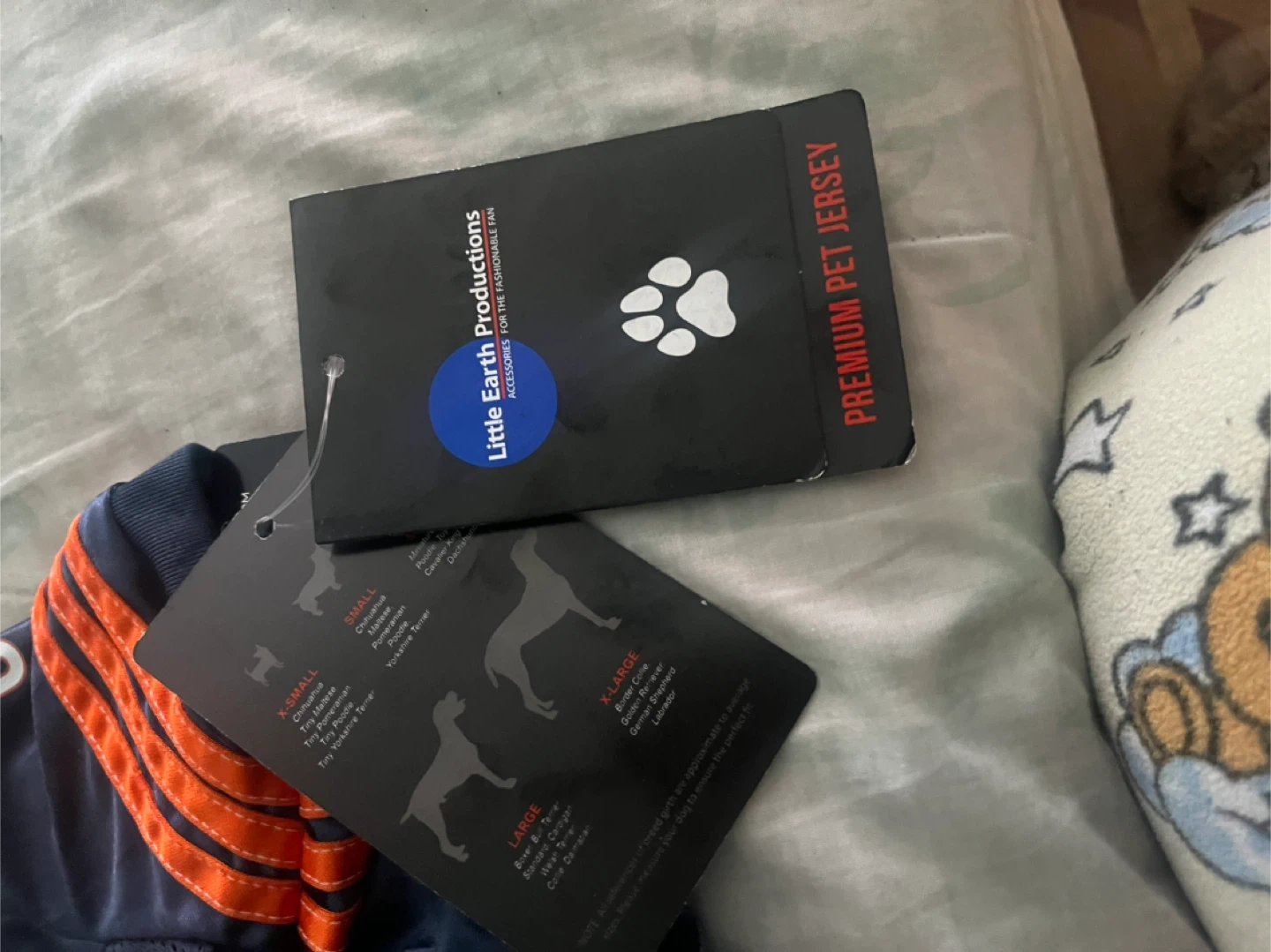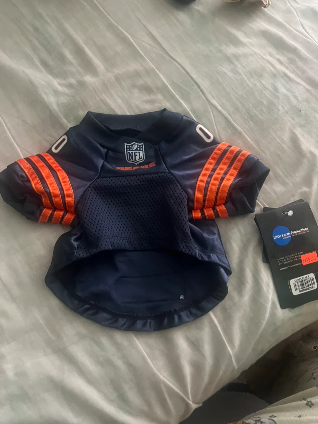 I'm selling a brand new NFL Chicago Bears dog jersey in size small! It's from Little Earth Productions and is a premium pet jersey. The original price was $35. Never worn it cause it doesn’t fit my dog