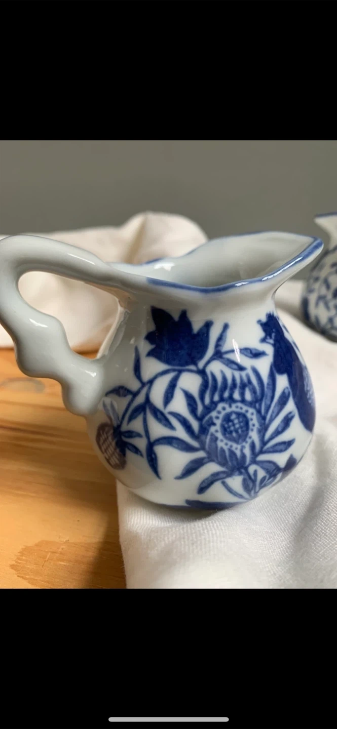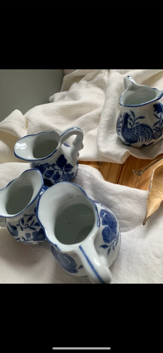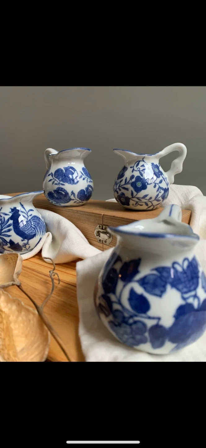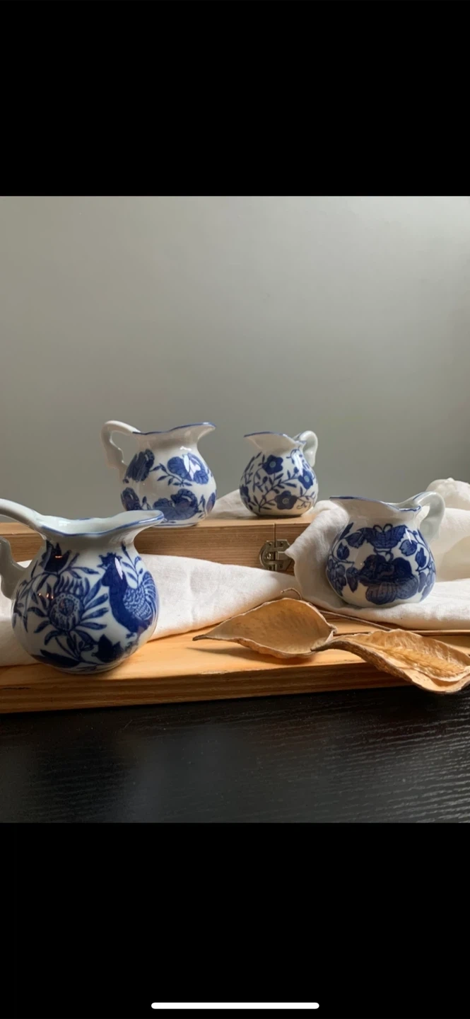 •Set of 4 lovely small creamer jars, that feature 4 separate blue and white designs.