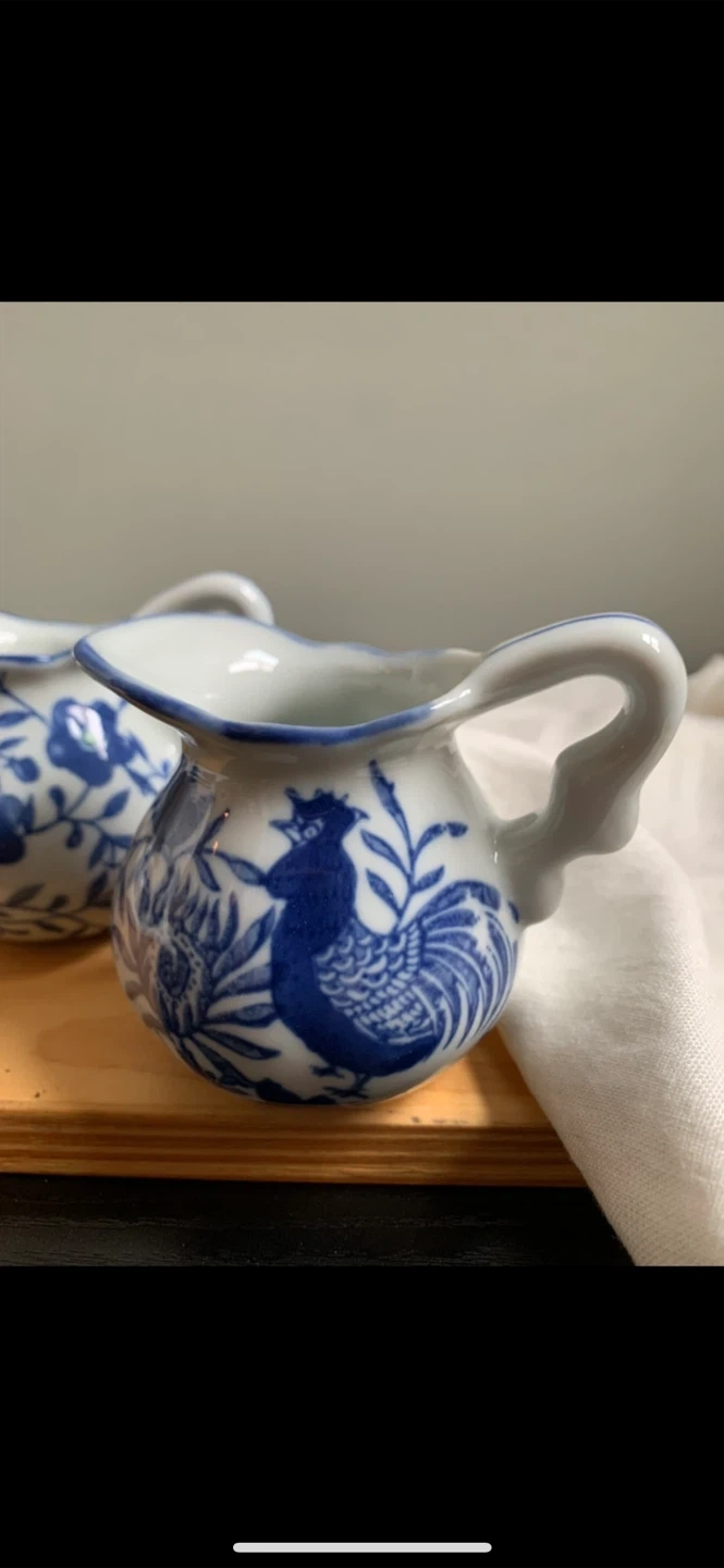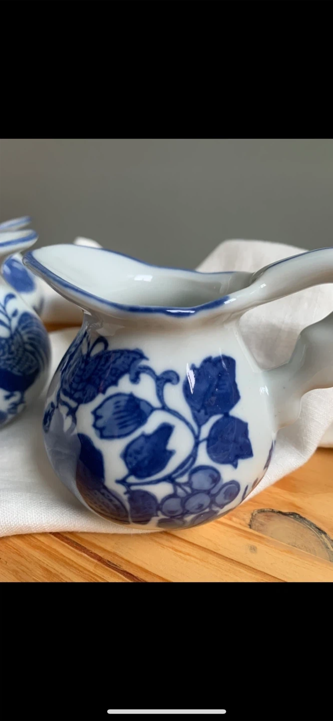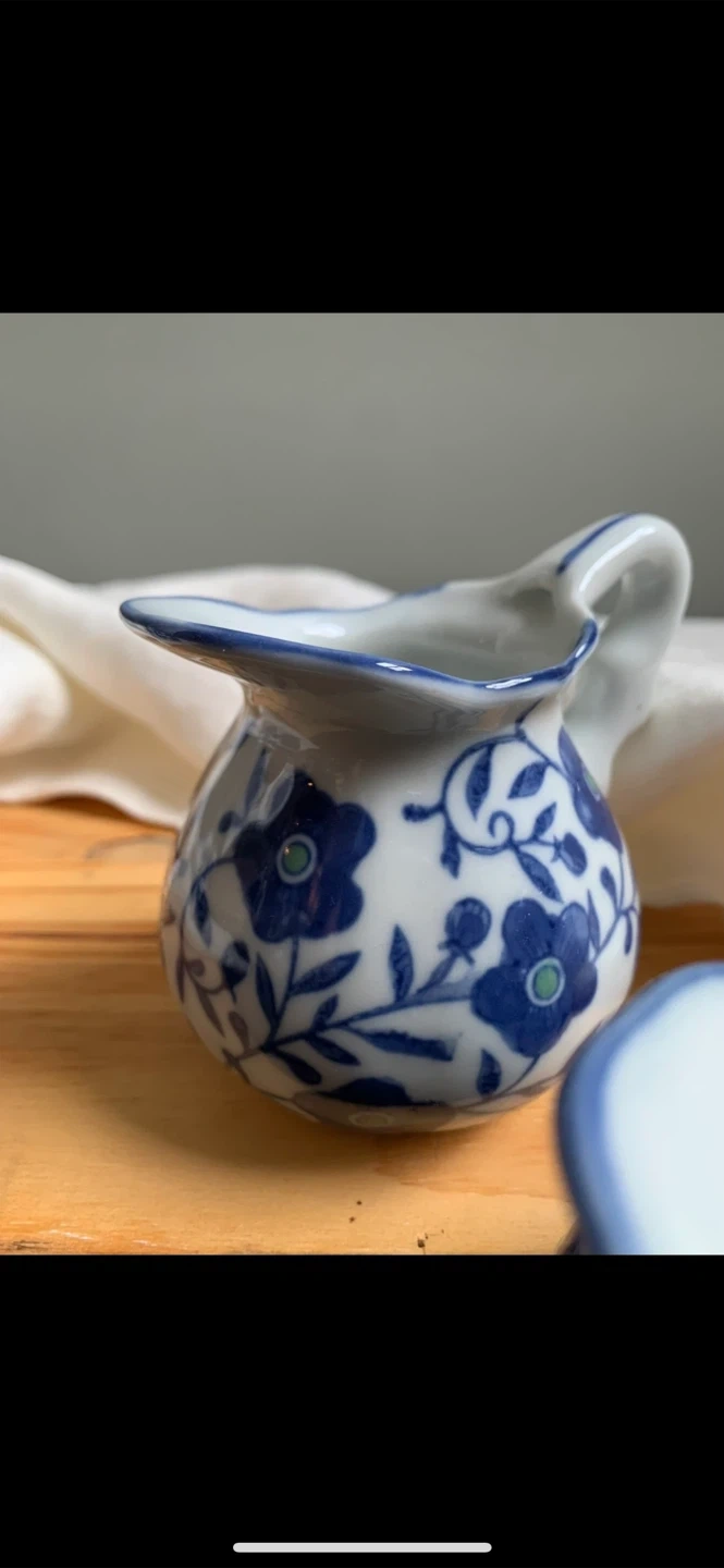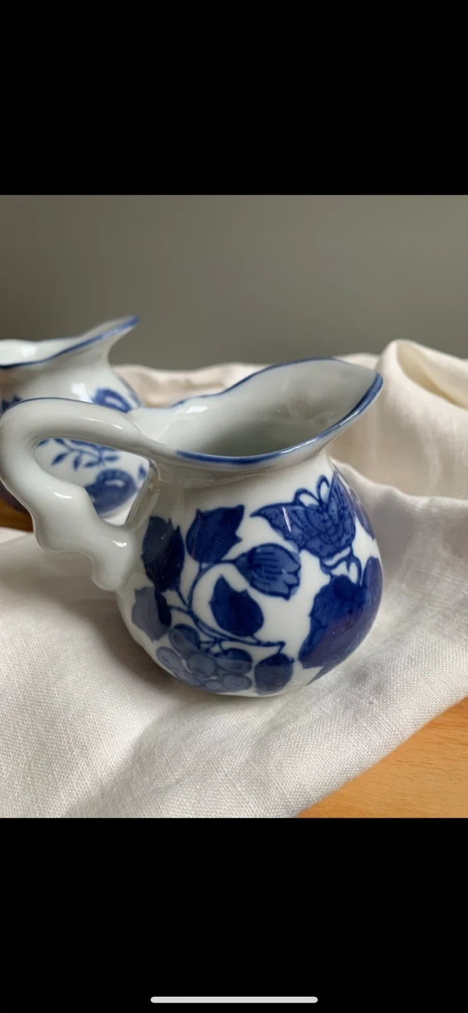 •Set of 4 lovely small creamer jars, that feature 4 separate blue and white designs.