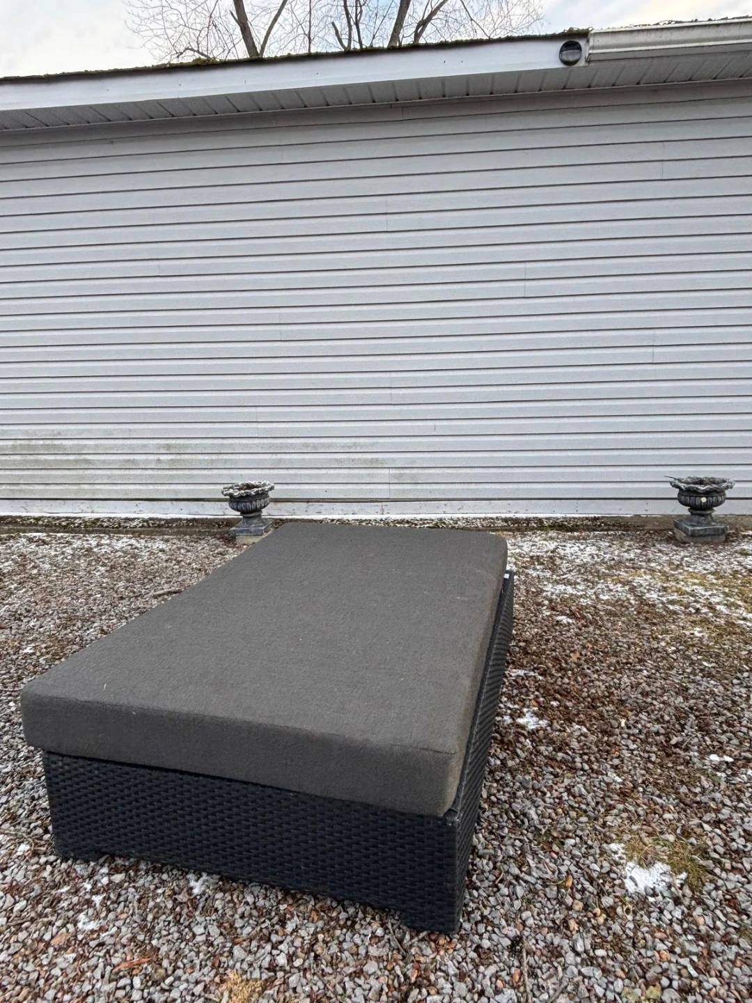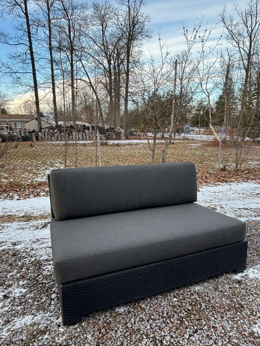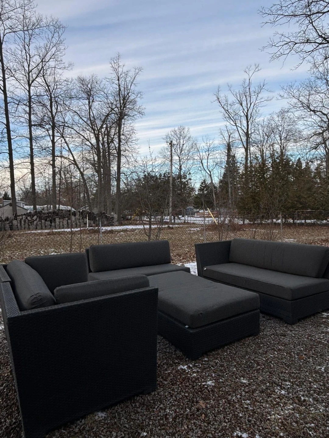 Selling a lovely outdoor sectional sofa set. It's in great condition and perfect for enjoying those warm summer evenings on the patio. The set features a stylish grey colour that will complement any outdoor space. Comes with pillows. Seats are 70 inches long x 35 inches wide x 29 inches high. Ottoman is 54 inches long x 34 inches wide x 10 inches high.