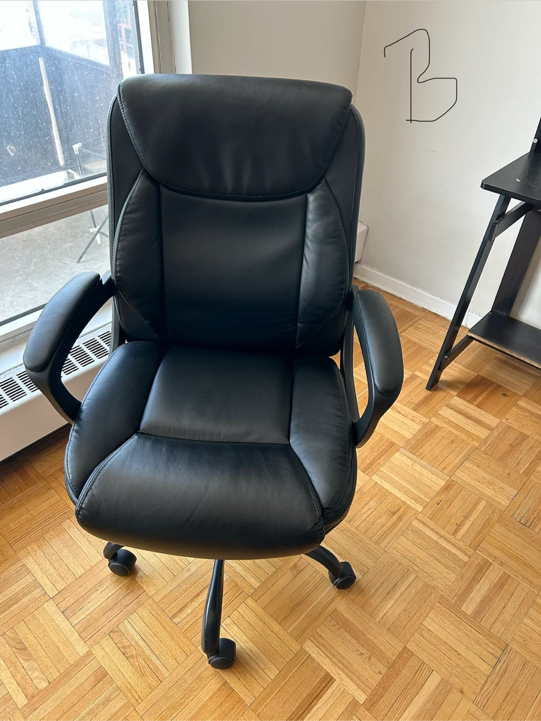 Selling a black office chair. It's in good condition and ready for a new workspace. Perfect for working from home or for students!