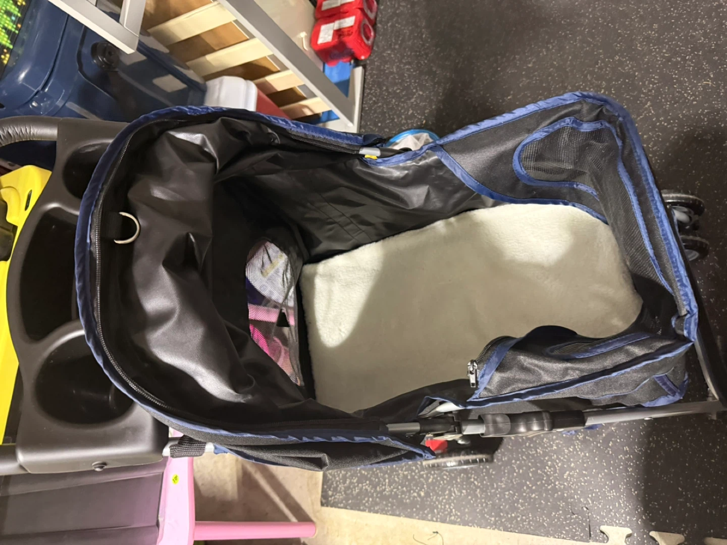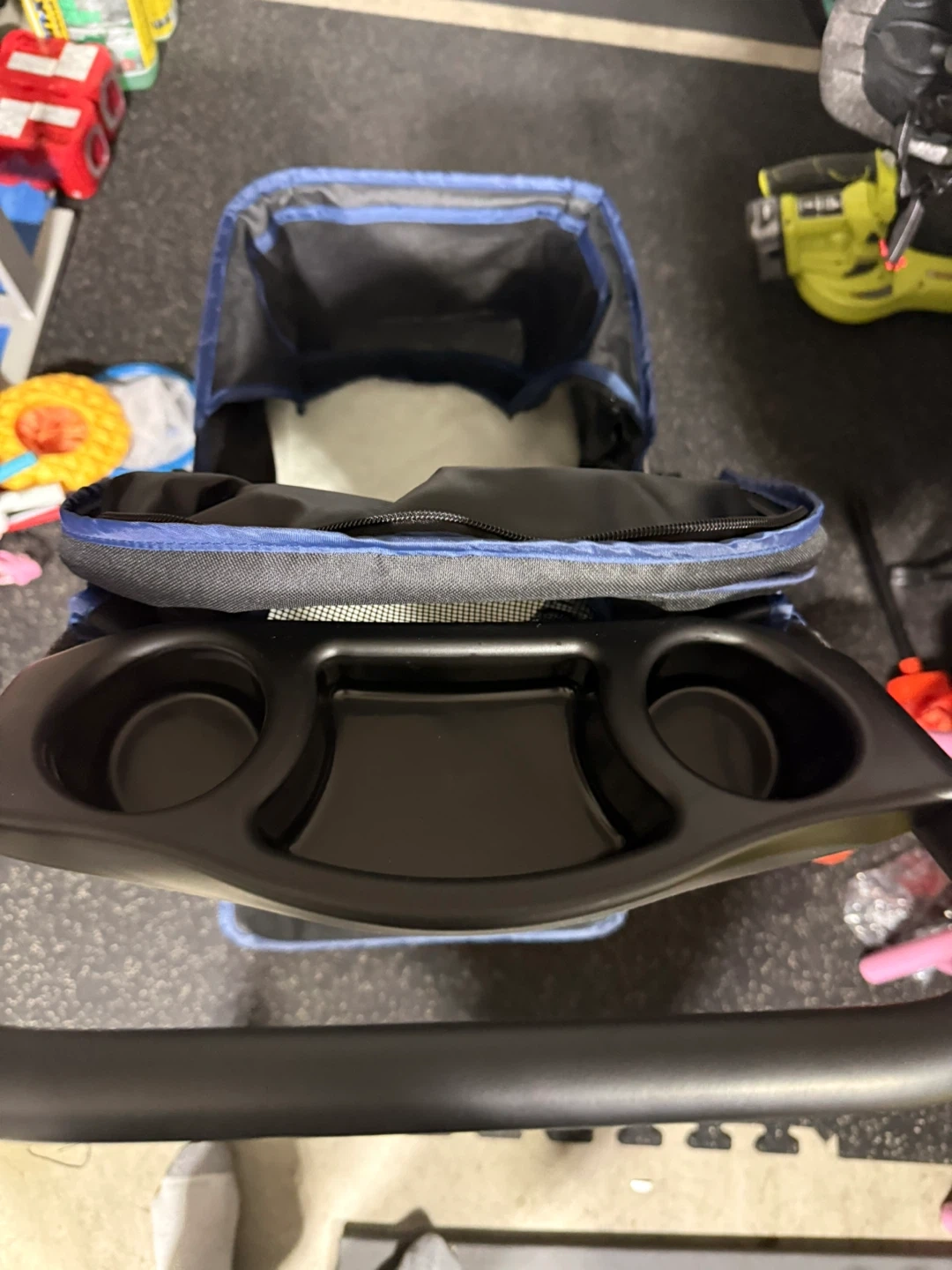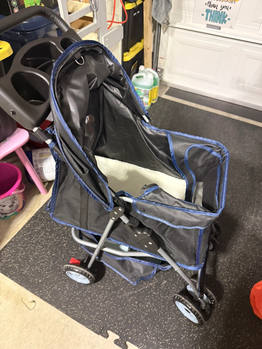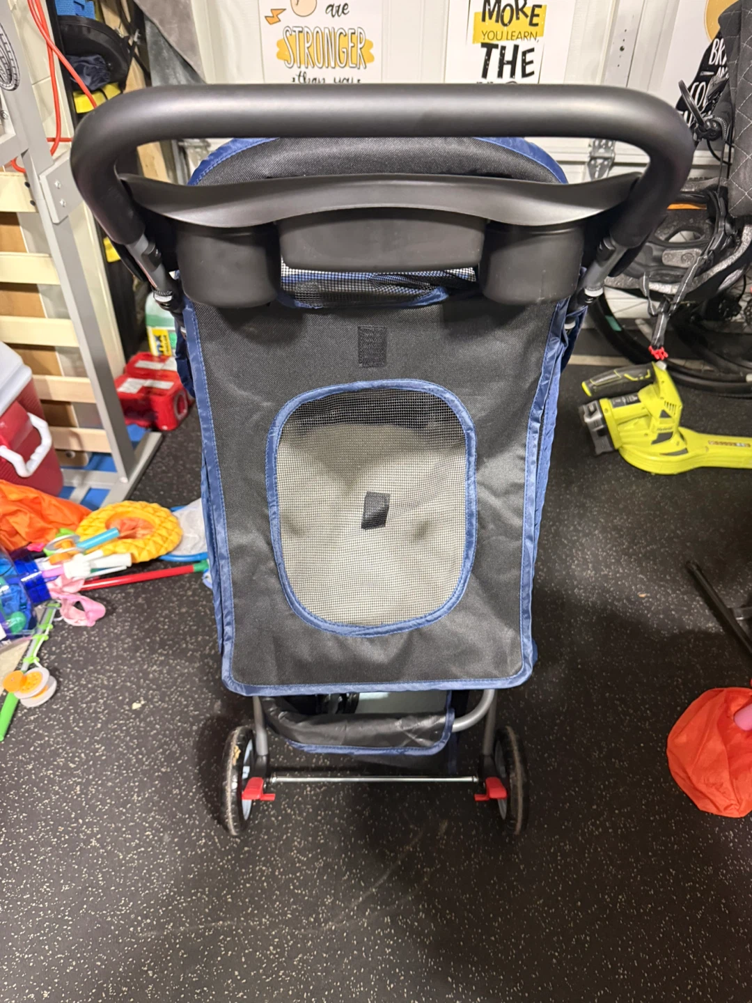 Selling a pet stroller in good condition. It's blue and black and has a comfortable interior for your furry friend. Perfect for walks around the neighbourhood!