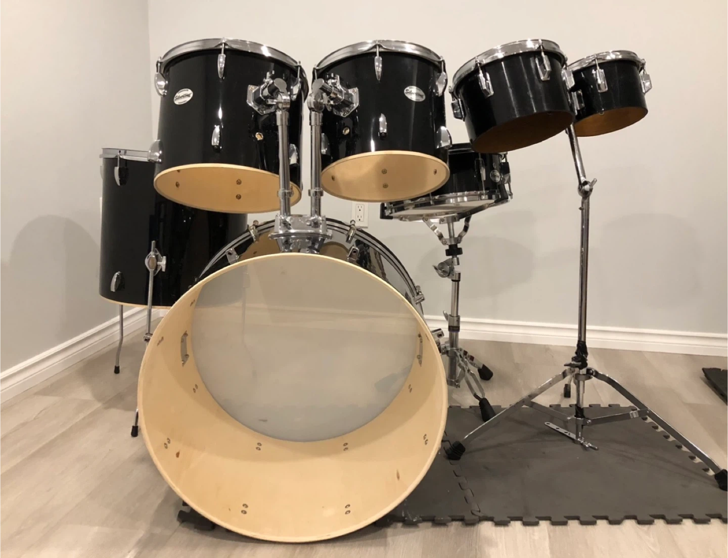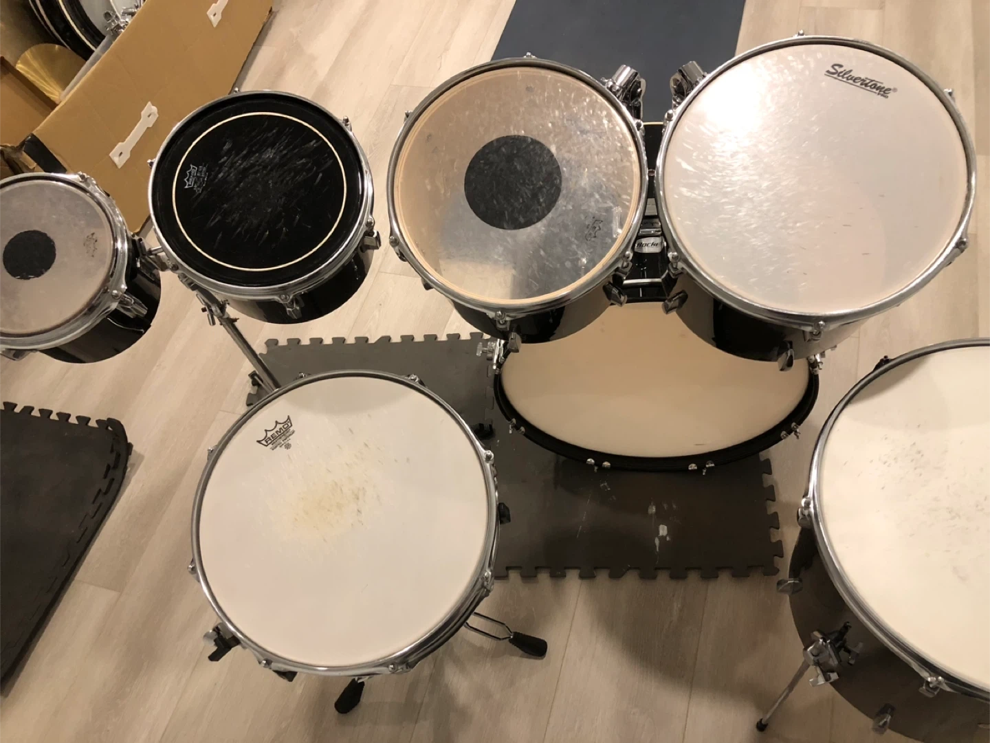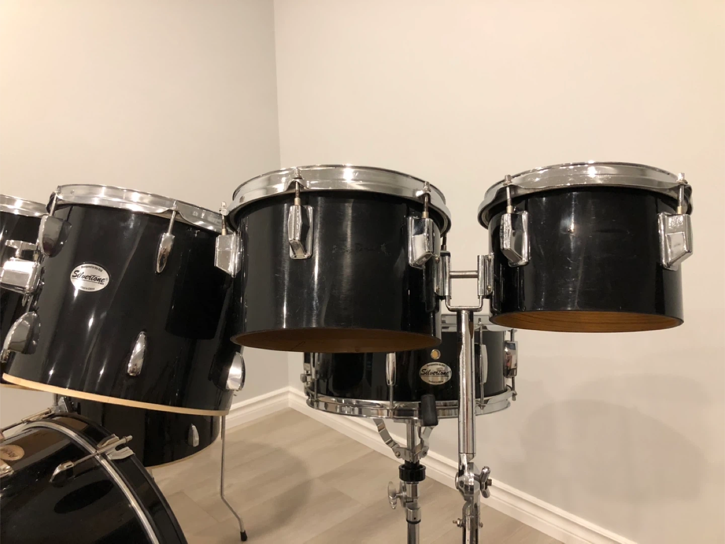 Black 14” Silvertone snare can be swapped out for Westbury chrome (see photo). Snare stand not included.