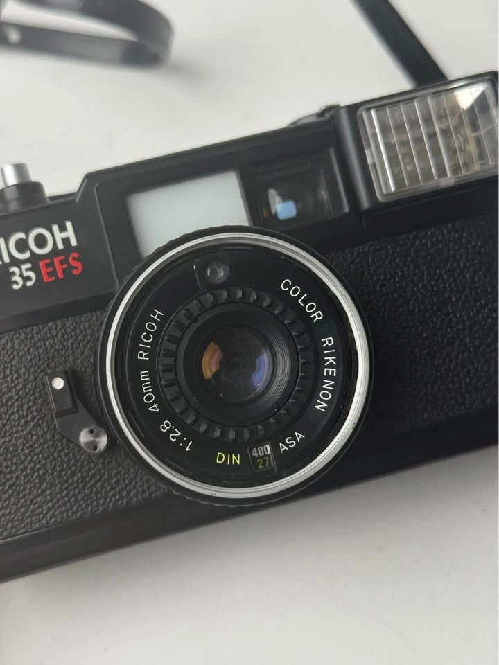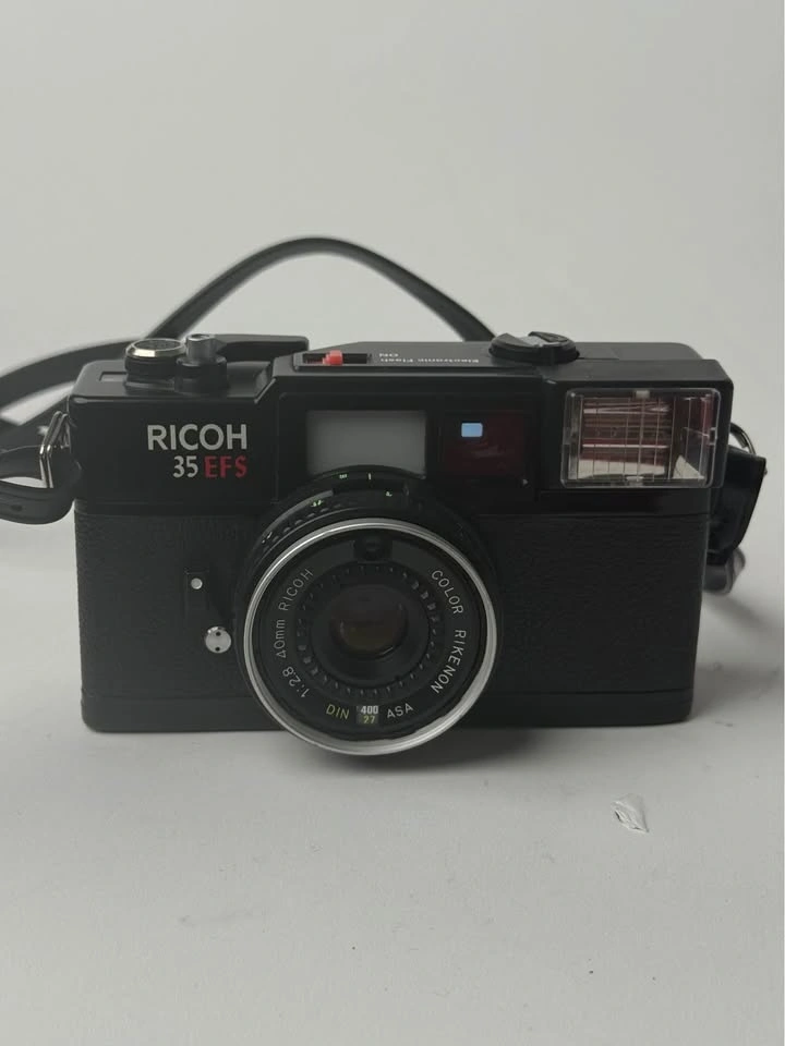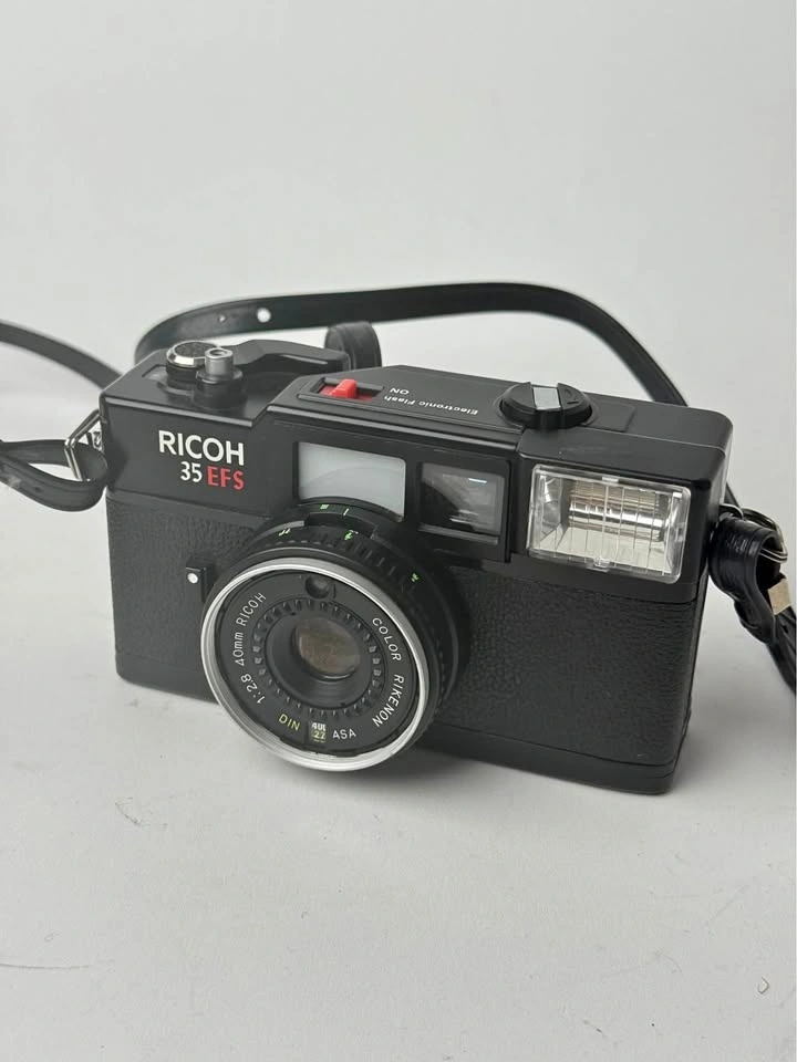 Capture timeless moments with this vintage Ricoh 35 EFS 35mm film camera! This compact camera features a sharp 40mm f/2.8 lens, perfect for street photography and everyday snapshots. It's in used condition, showing some signs of wear but fully functional and ready to shoot. A great piece for collectors or anyone looking to explore film photography. This little camera is lots of fun.