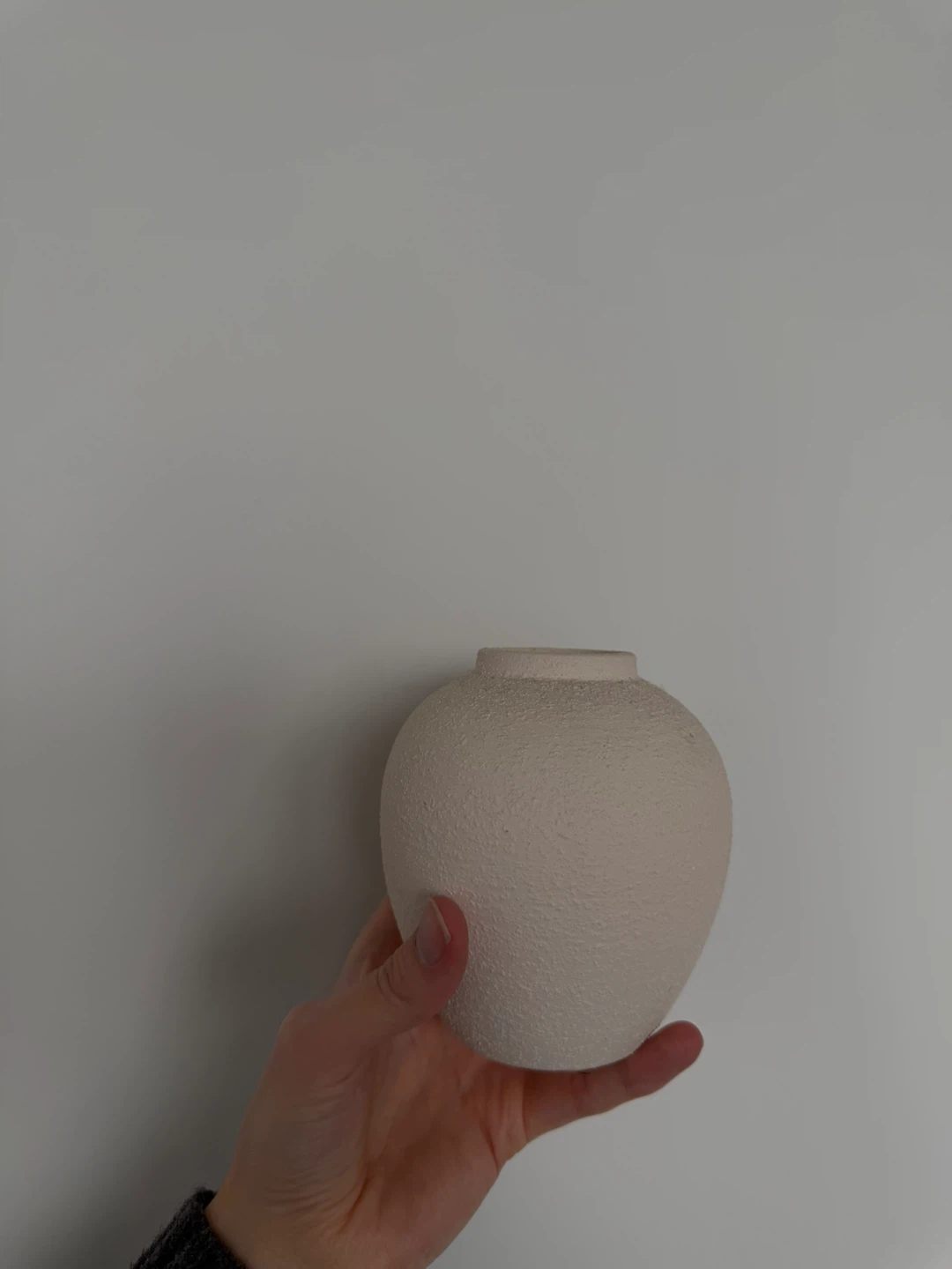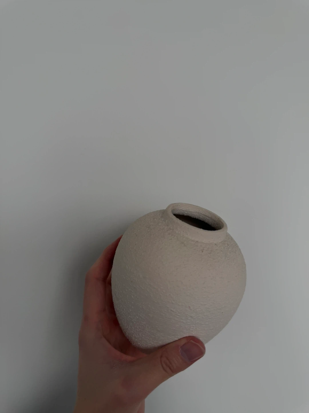 Here's a lovely beige ceramic vase with a textured finish! It's perfect for adding a touch of simple elegance to any room. The vase is in great condition and ready to display your favourite flowers or stand alone as a decorative piece