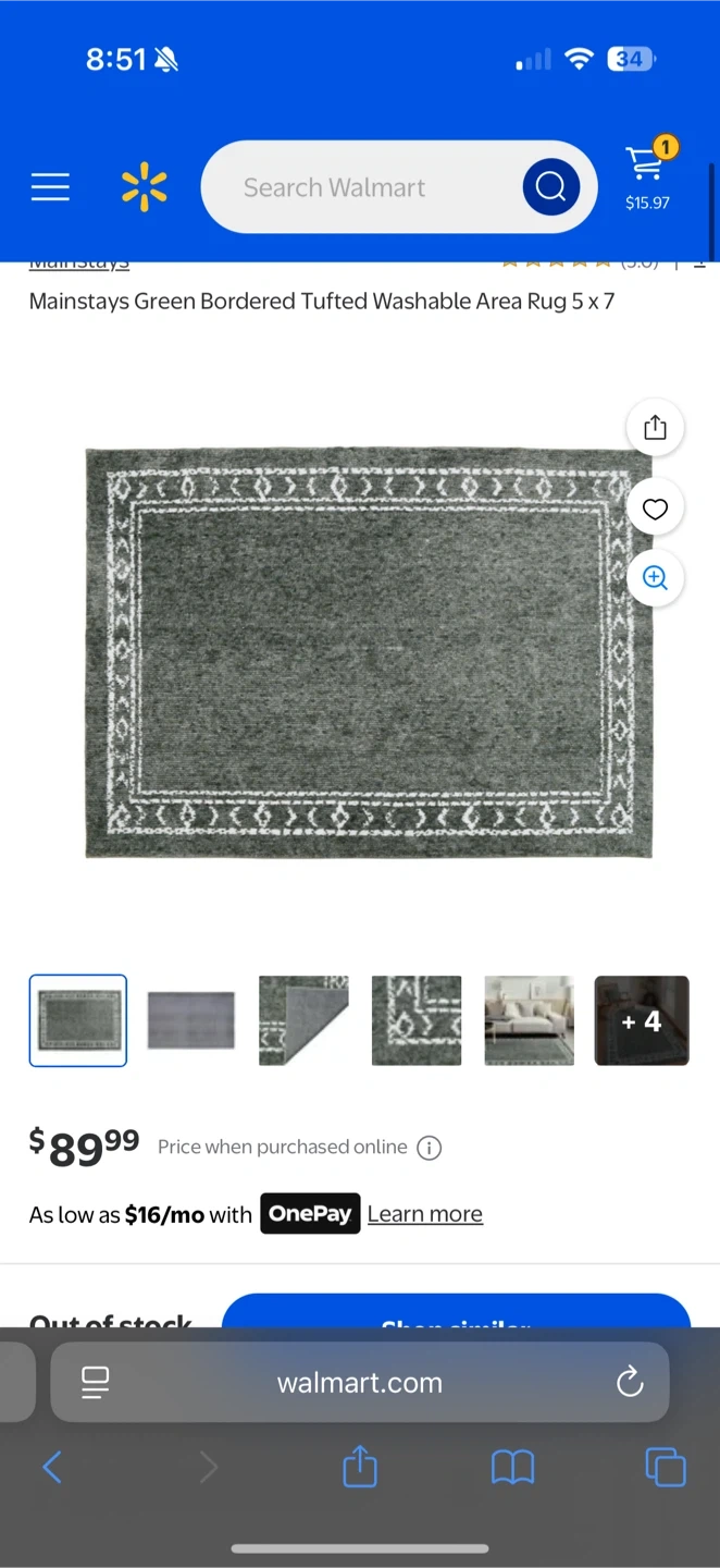 Buy & SellRug 5 x 7, greenRug 5 x 7, green$30Selling a Mainstays green bordered tufted washable area rug. It's a 5 x 7 rug, originally bought for $89.99. New! Newer usedEstadoNewWHERE TO MEETCheck LocationView MapSELLERAnastasiaMid Island100 reviews0 chats·0 favorites·3 viewsSEND CHAT TO SELLERHi Anastasia! I’m interested in your listing.Hi Anastasia! I’m interested in your listing.Get the Karrot app to chatSign In to chat