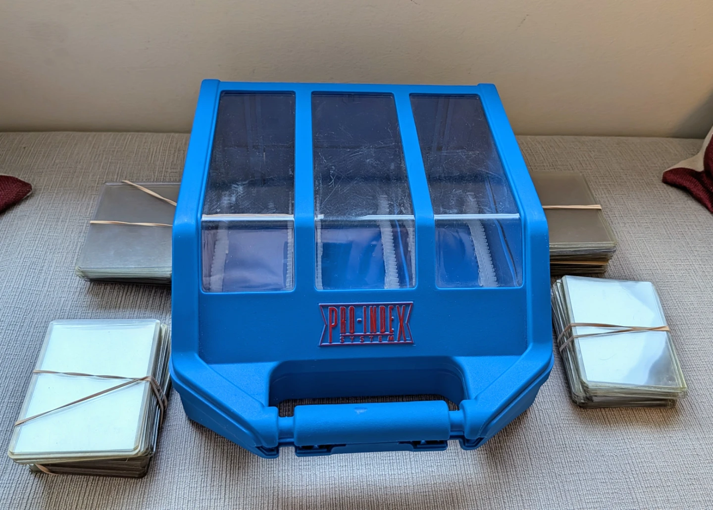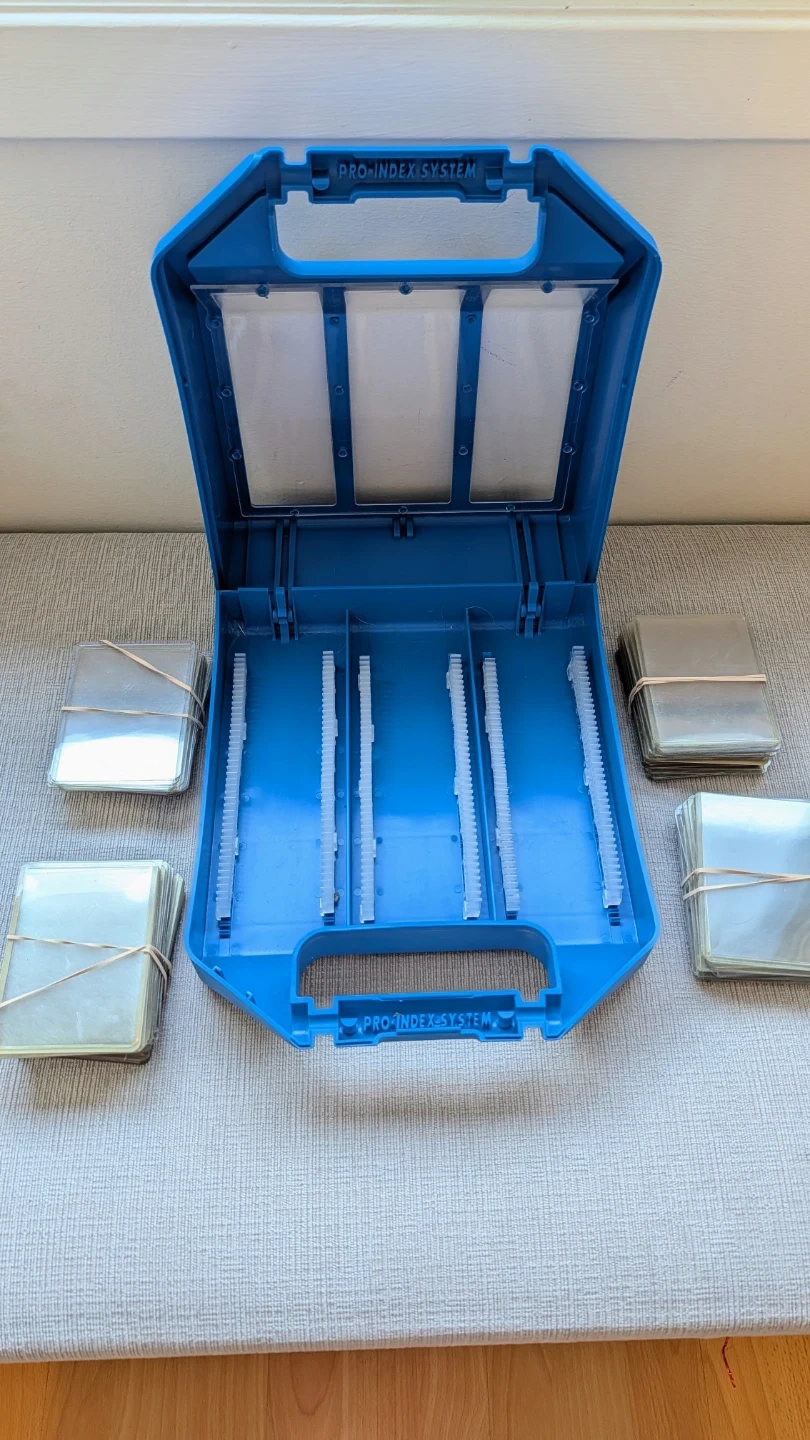 Selling a Pro-Index System card storage case. It's blue and comes with the dividers and sleeves for organizing your cards. Perfect for collectors!
