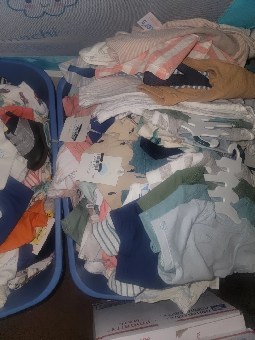 Selling bundle of baby clothes! SIZES NB TO 5T . There's a variety of items, including onesies, shirts, pants, and more. Great for stocking up on essentials! SURPRISE BOXES START FROM $20, GUARANTEE 10 pieces or more.