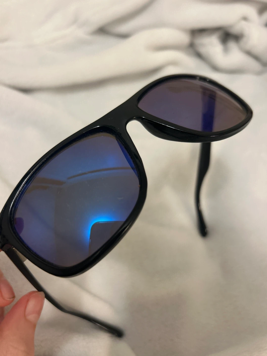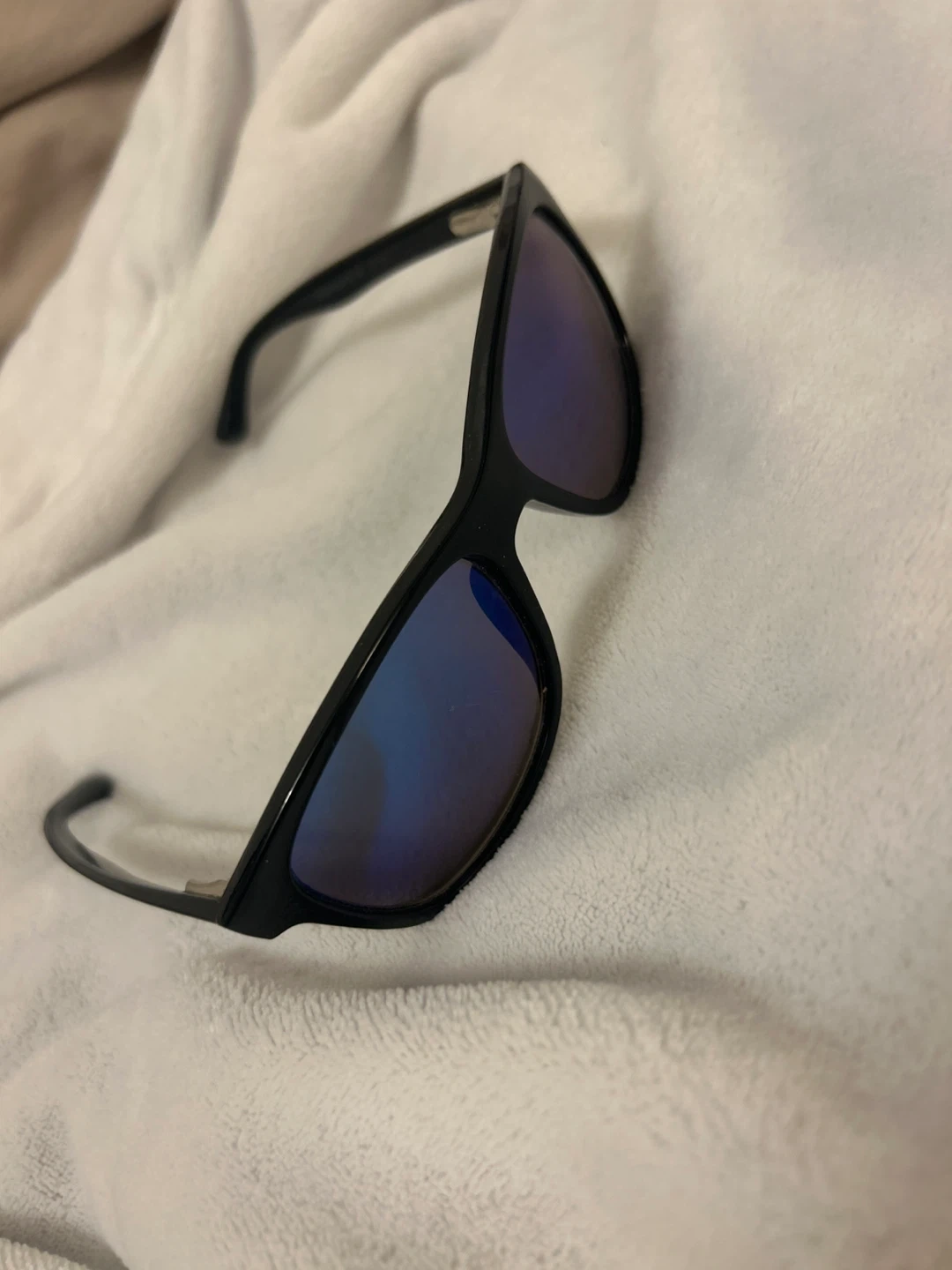 Selling a pair of black sunglasses with glare and UV protection! Perfect for sunny days or adding a cool touch to your outfit.