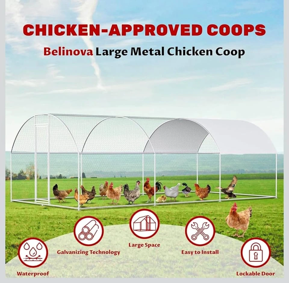 Large metal chicken coop designed for multiple chickens with waterproof and anti-UV cover, premium poultry cage for outdoor farm
