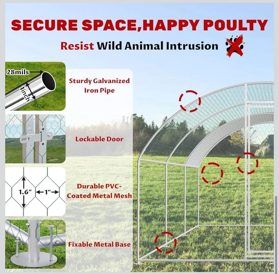 Gallinero grande de metal diseñado para múltiples pollos con cubierta impermeable y anti-UV, jaula de aves de corral premium para uso en granja al aire libre
