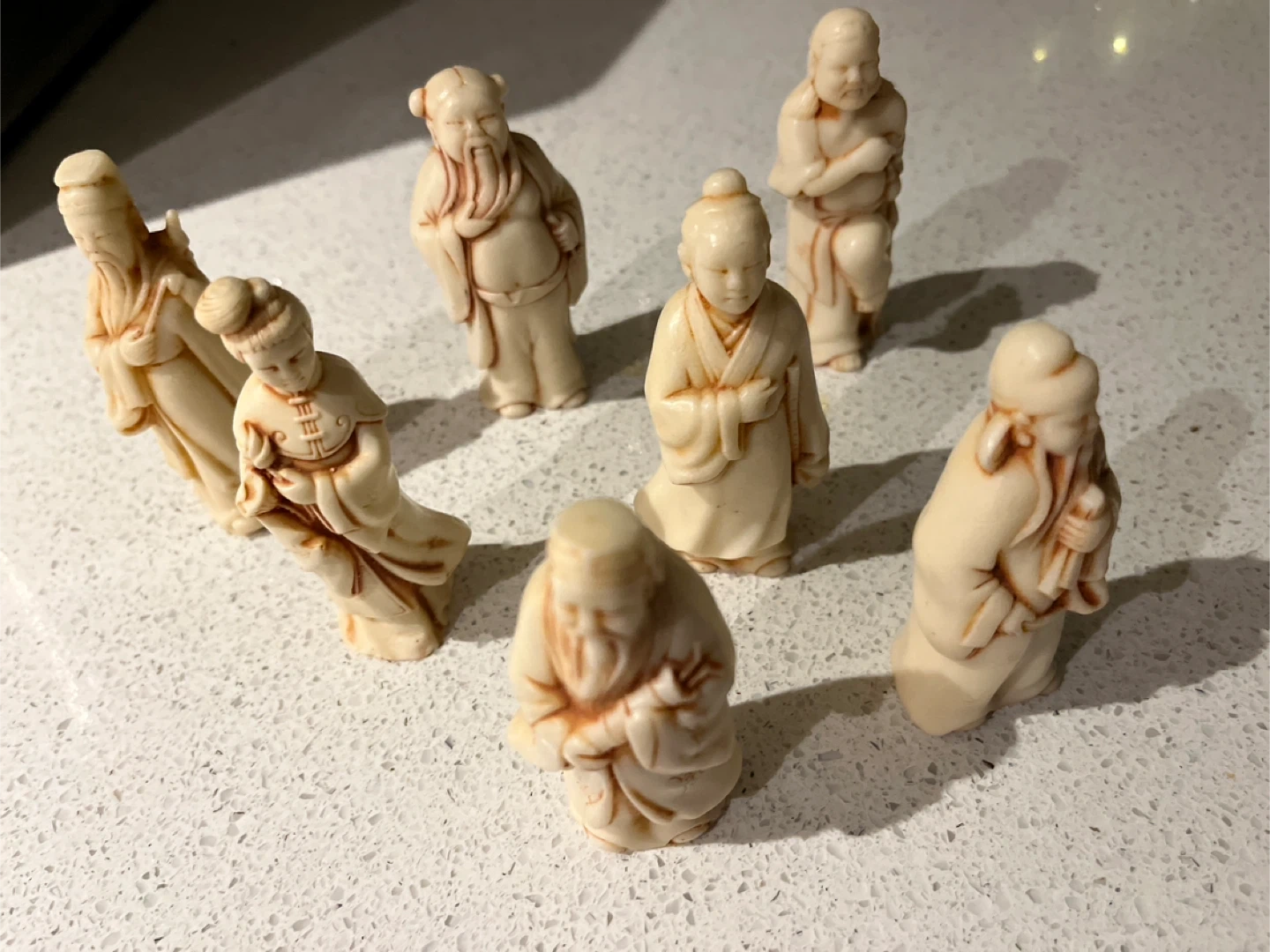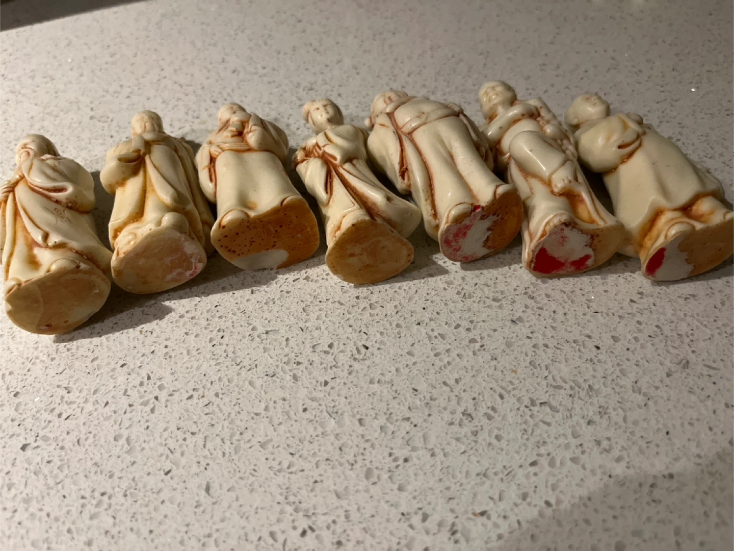 Selling a set of vintage Chinese figurines. There is wear in the bottom please take a look at all the pictures. They have a unique, antique look and would make a great addition to any collection or as decorative pieces around the house
