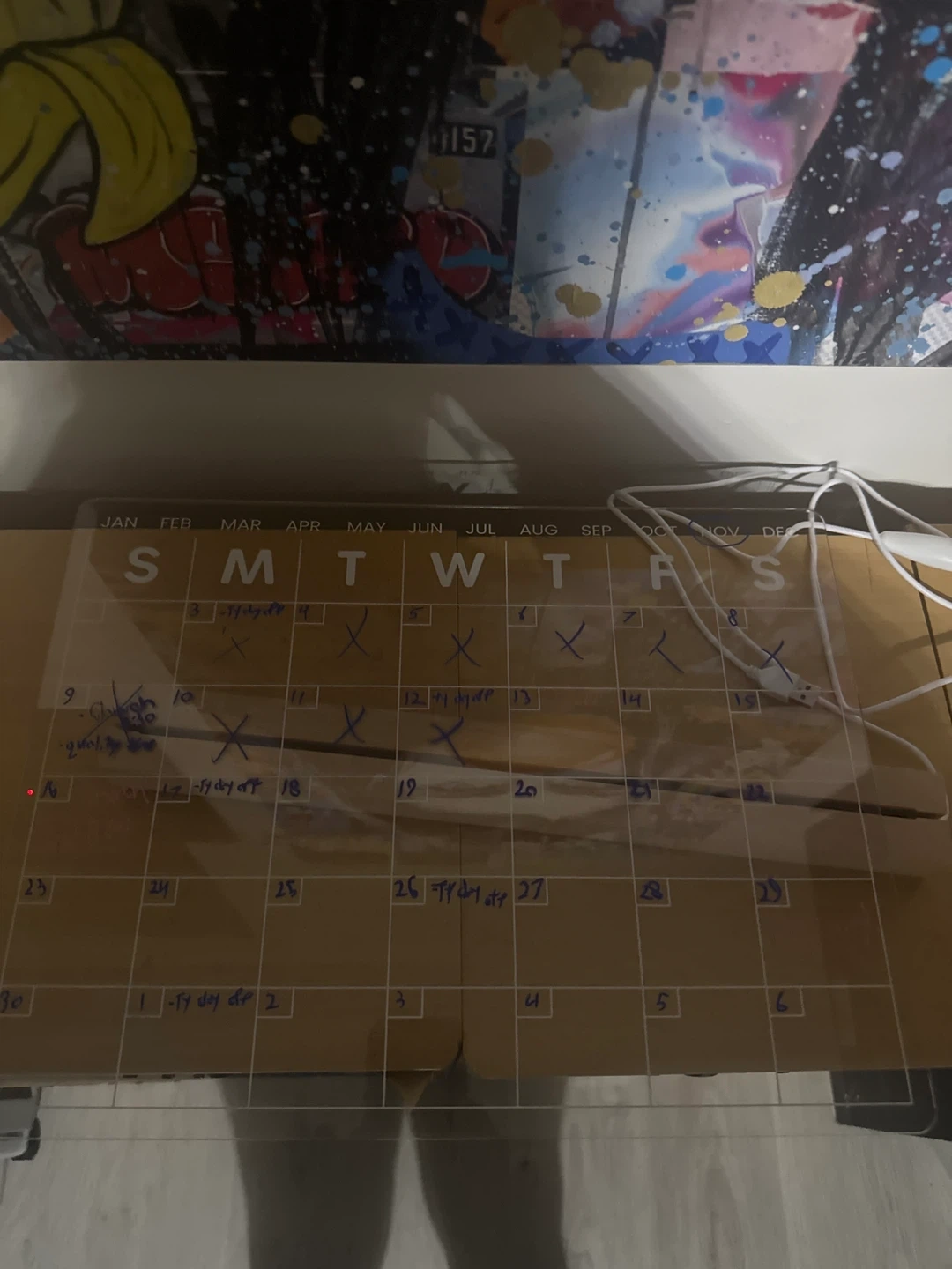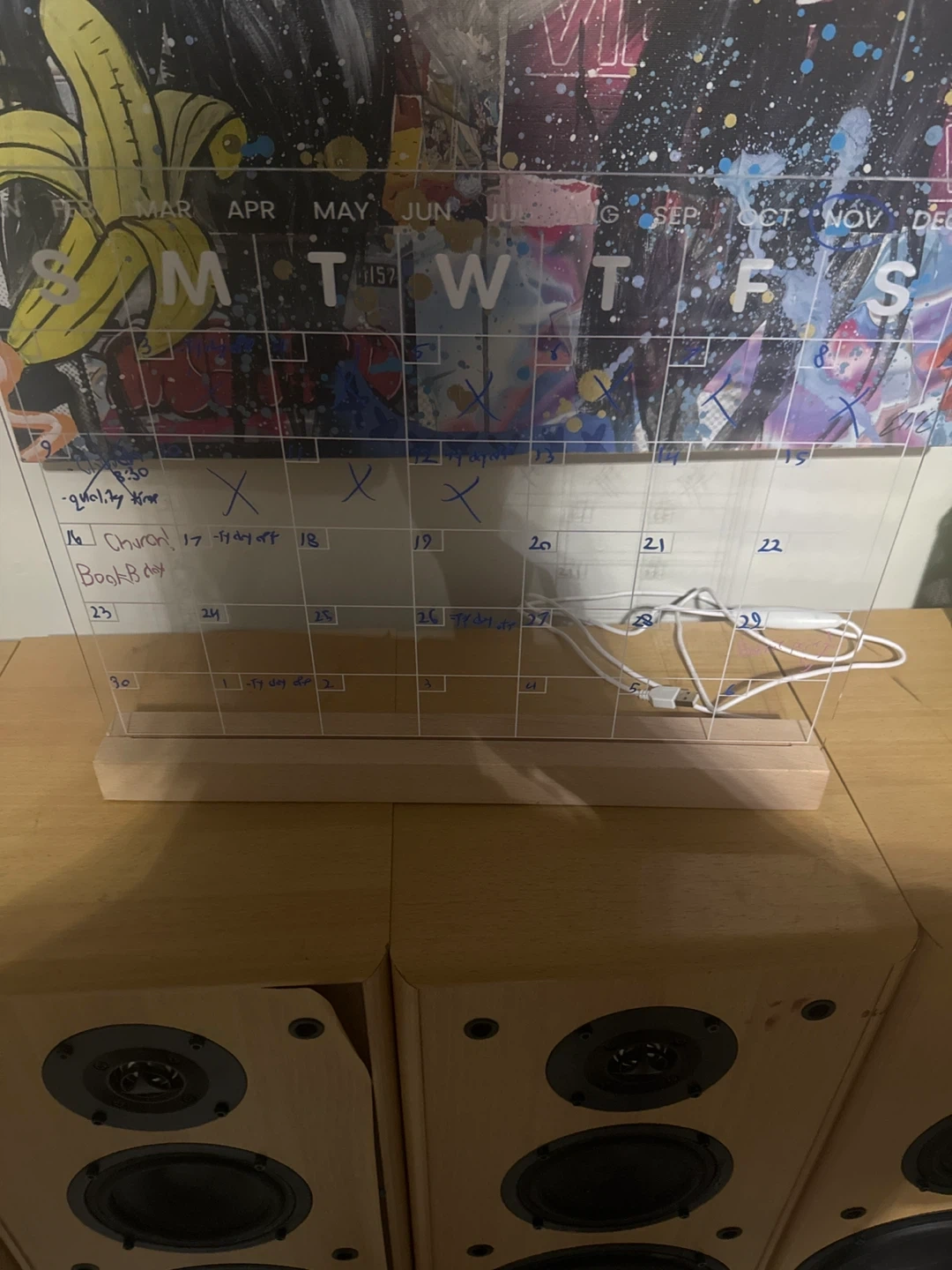 Selling a clear acrylic calendar with a wooden stand. It's perfect for planning out your month and keeping track of important dates. It has a sleek, modern look that would fit well in any home or office space. The calendar is in great condition and ready for a new owner!