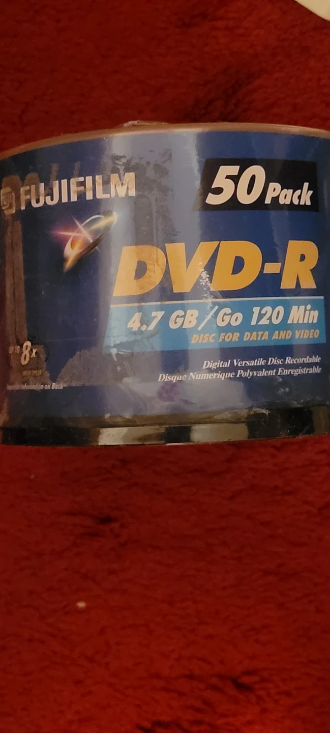 Selling a Fujifilm 50 pack of DVD-Rs. These are 4.7 GB and can record 120 minutes of video. Perfect for archiving your old home movies!