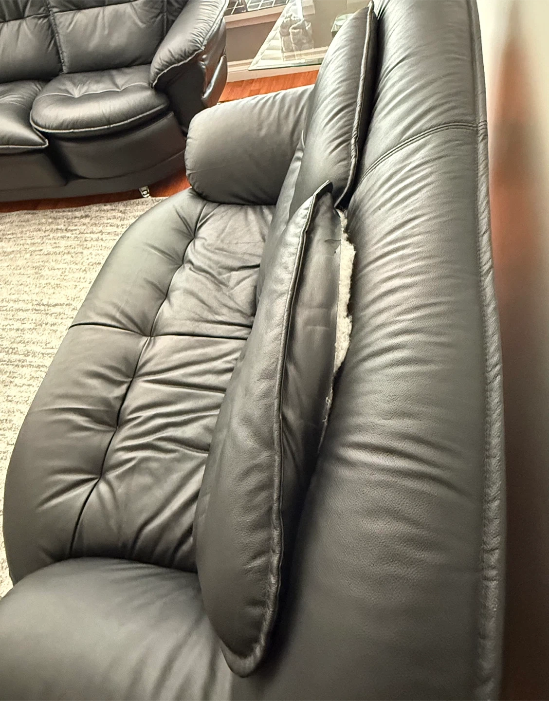 Black leather sofa set