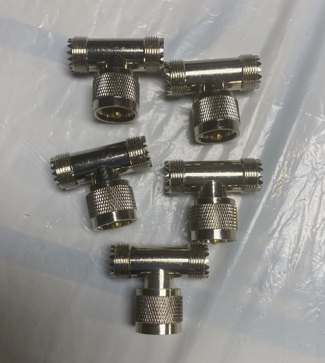 5 Pcs UHF Triple T Type Male to Dual Female Coaxial Conne