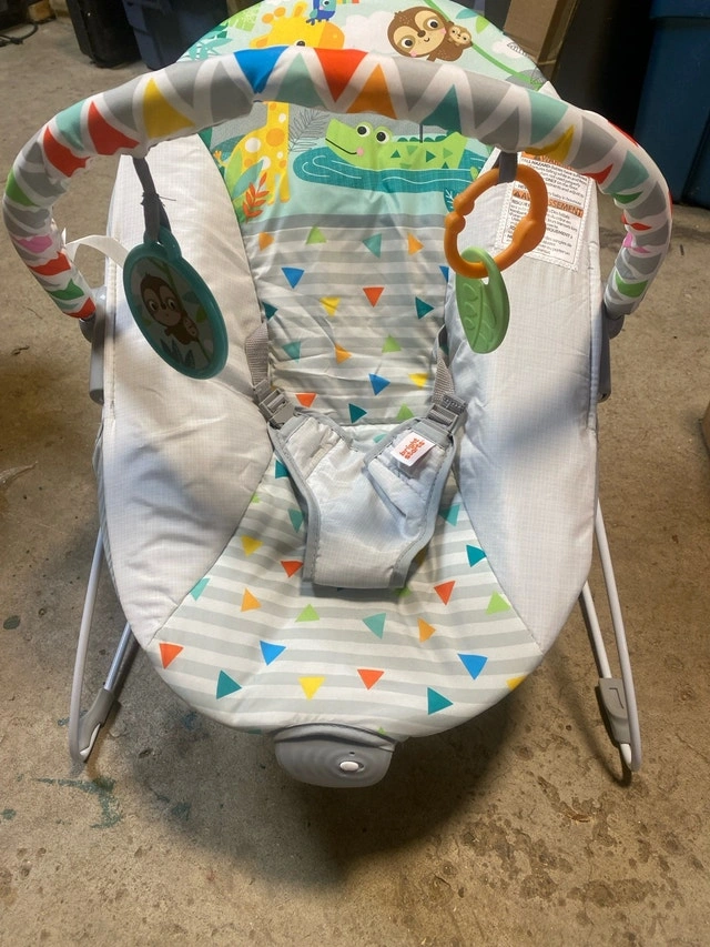 Safari-themed bouncer encourages baby to explore! Toy bar removes with one hand for easier access to baby. Deep supportive seat for baby’s comfort. Third party safety tested and approved. Bouncer for baby boy or girl includes 2 toys; new parent must-have. Machine washable seat pad and insert; Designed in the USA. For Sale By: Owner