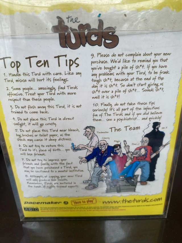 The Turds collectible figure of Elvis Figure is approx 4" Tall. Great Gag present for all Elvis Presley fans. This collectible is ready to rock your shelf. It comes in its original packaging with fun "Top Ten Tips" on the back. A quirky addition to any collection!