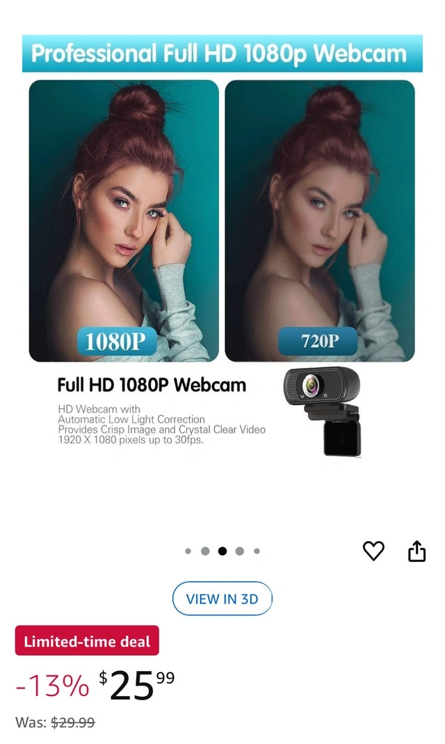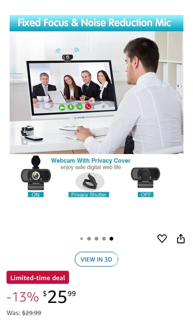 Full HD 1080P Webcam – Crystal-clear video calling, streaming, and conferencing (1920x1080 resolution). Auto-adjusts lighting for a natural look. 110° Wide-Angle + Stereo Mic – Perfect for webinars, meetings, and live streaming. Noise reduction ensures clear audio up to 10ft away. Plug & Play – Works with Windows/Mac/Android. No drivers needed. Includes mounting clip & tripod thread. Wide Compatibility – Supports Skype, Zoom, WhatsApp, and more. Works on PCs, laptops, and Android TV. Free Privacy Cover & Tripod included