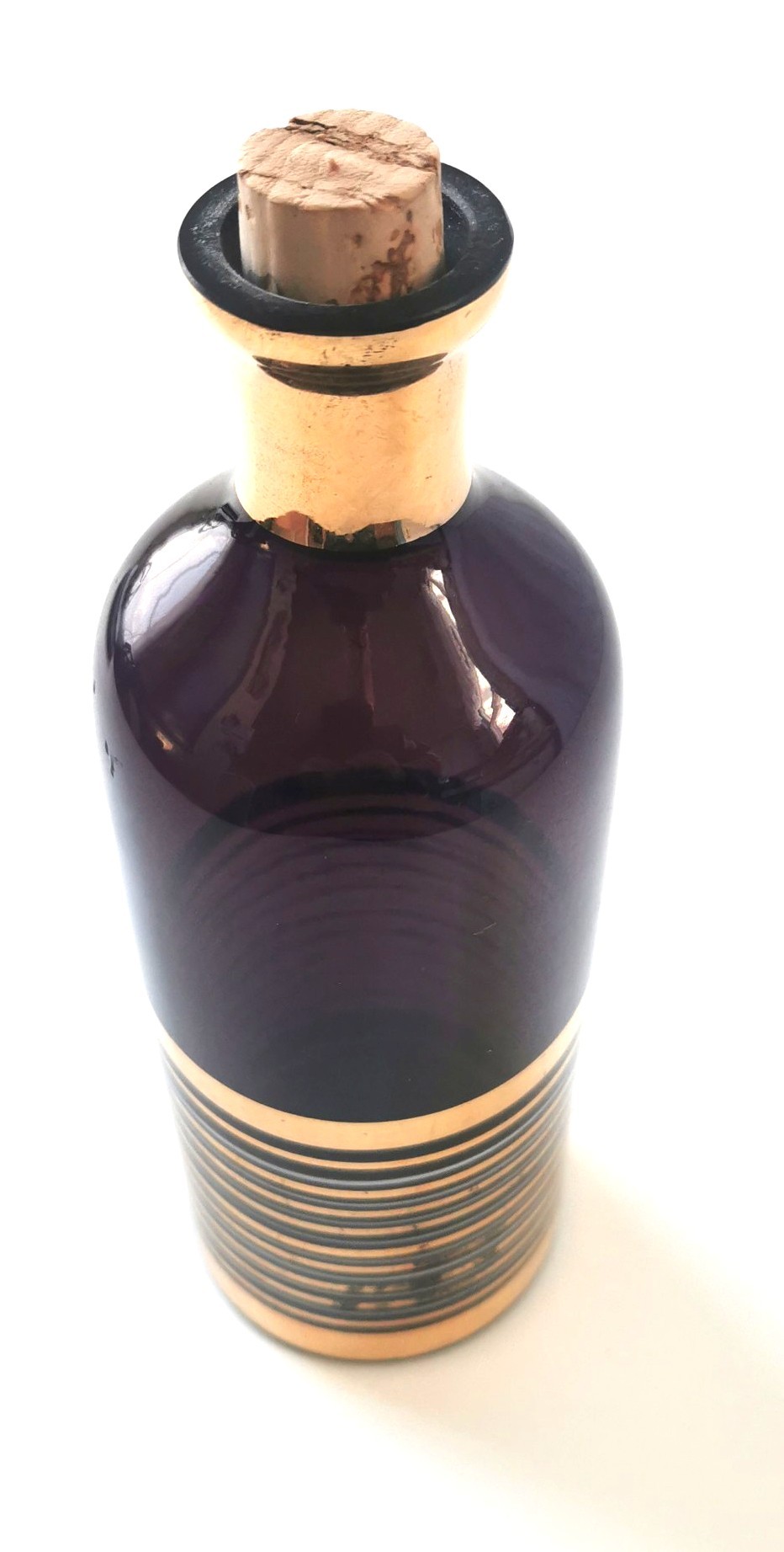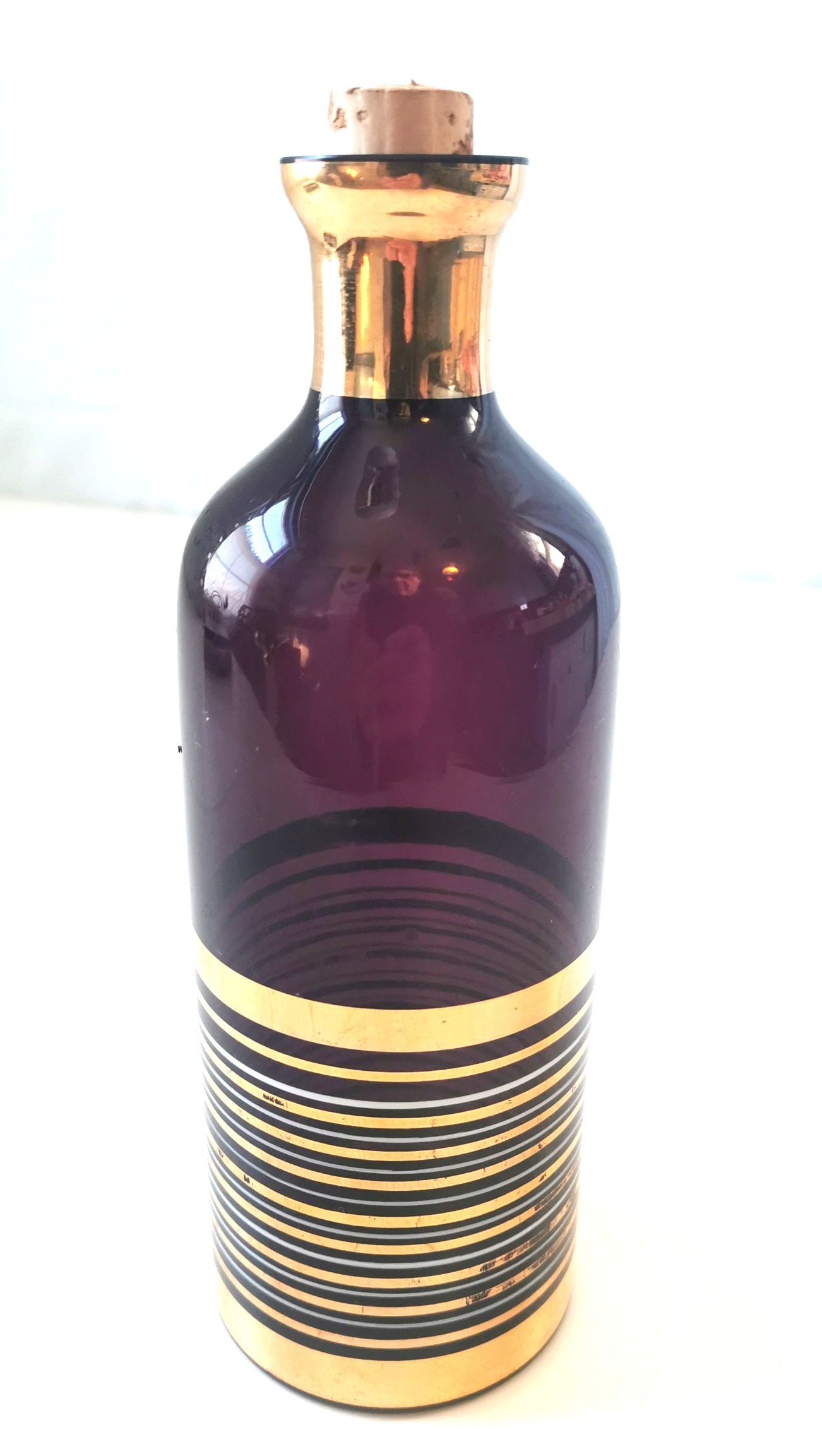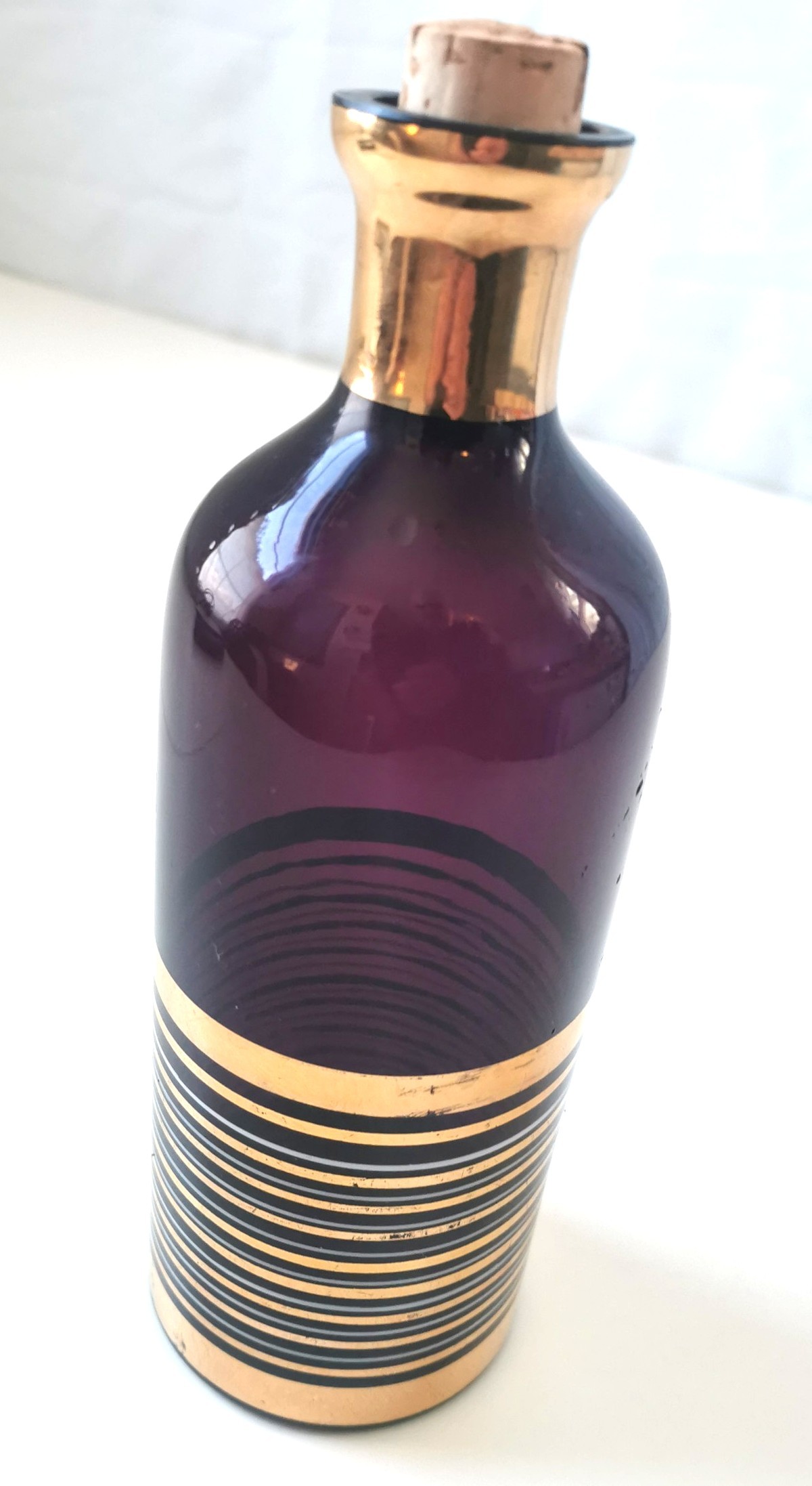 1962 Bohemian Amethyst Glass Decanter Gold Banded Czech Rep.