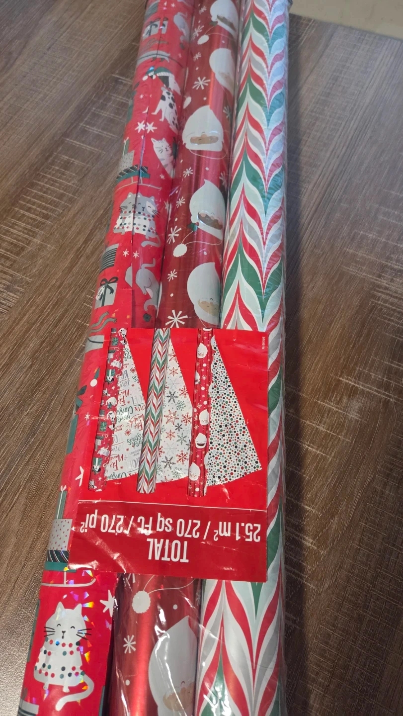 Condition: Leftover from wrapping my kids' gifts, but still plenty of paper on each roll.