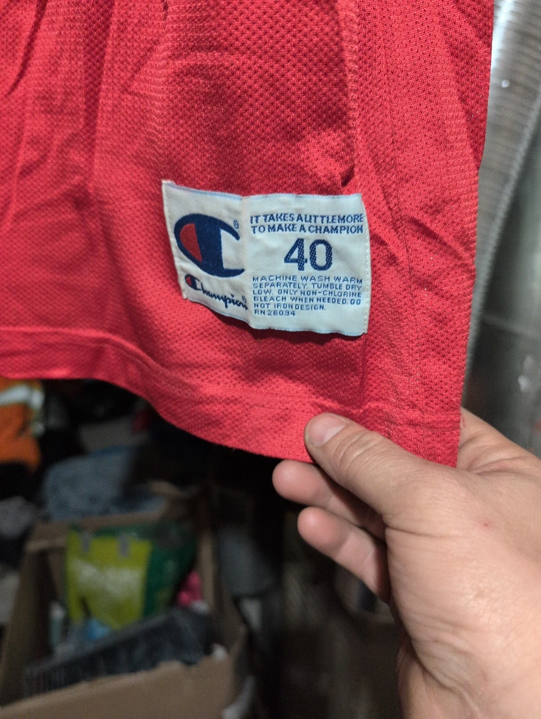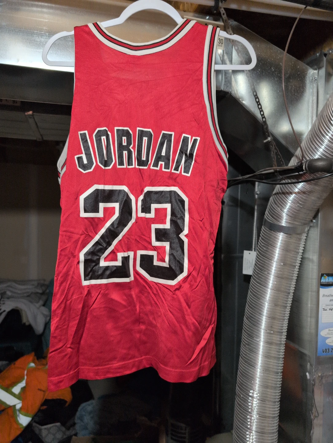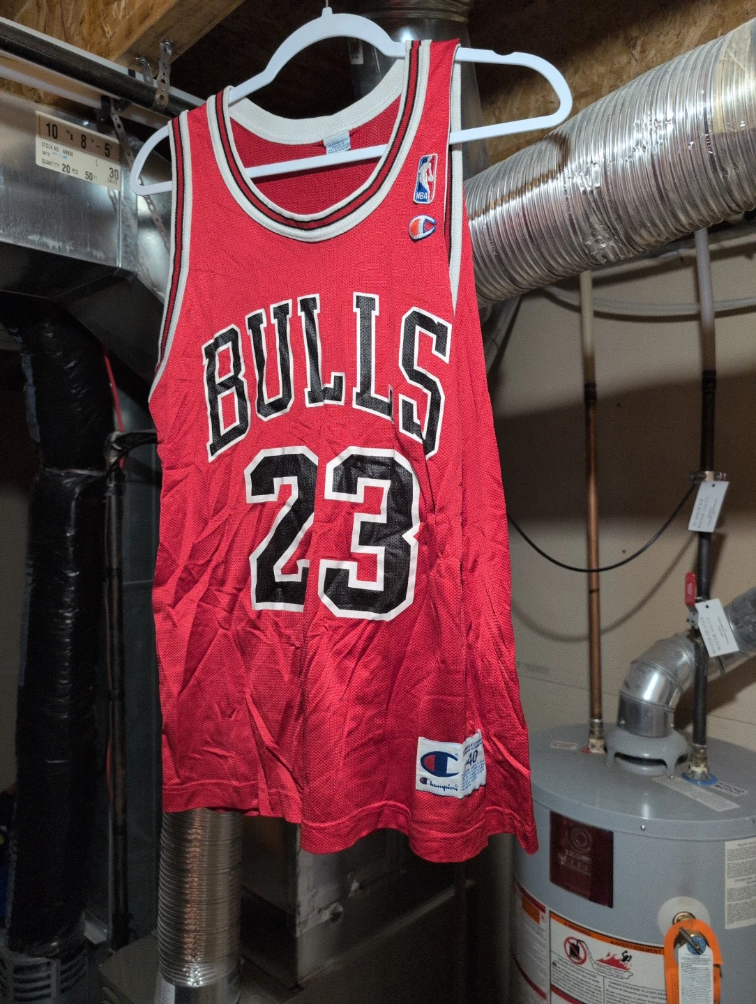 Selling a Champion Michael Jordan Bulls #23 jersey. It's a size 40 and has some wear, but still looks great! The jersey is red with black and white accents. Machine wash cold, tumble dry low