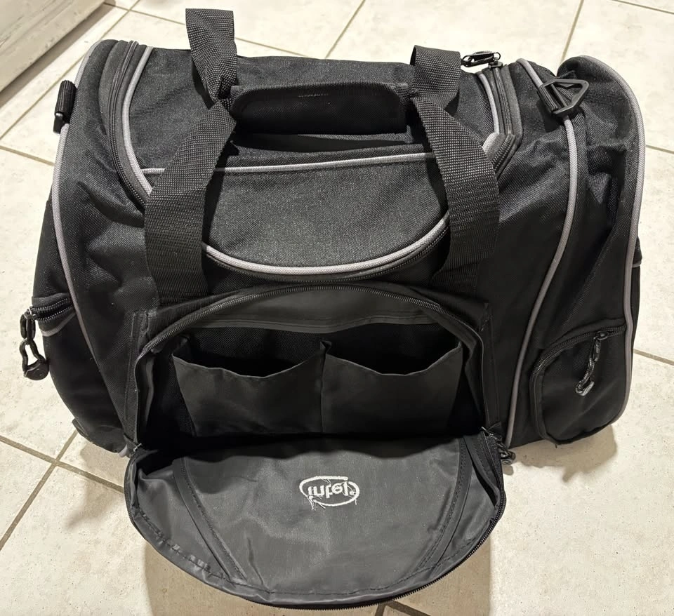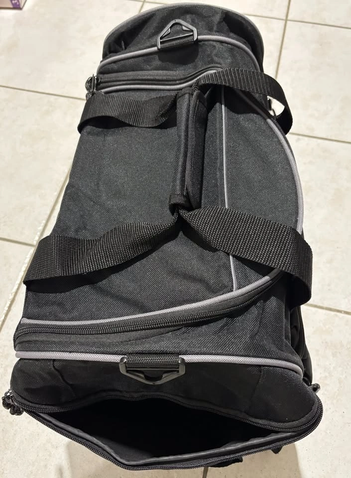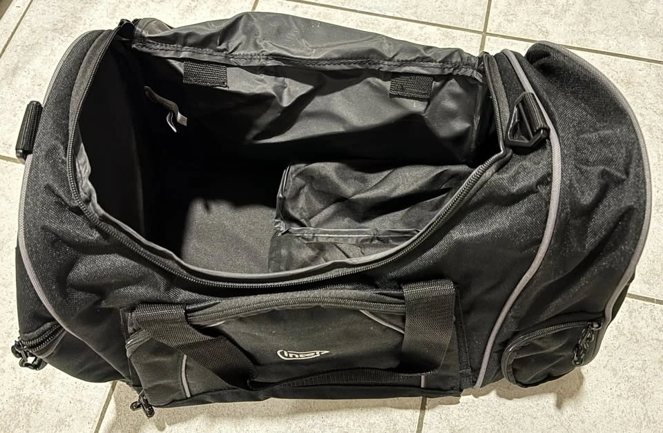 Brand new, unused Intel weekender duffel bag. A duffel bag with style, made from heathered poly-canvas. Features include a side shoe pocket with grab handle, side pocket and front zippered pocket. Removable adjustable shoulder strap included. Premium Quality made by Leeds for Intel, with Intel Logo.