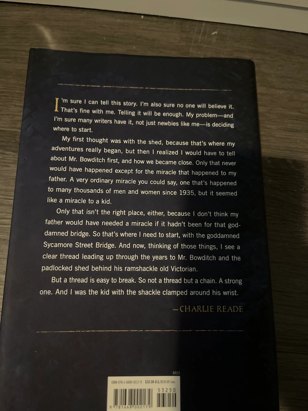 Selling a copy of Stephen King's novel, Fairy Tale! It's a captivating read by the master of horror himself. The book is in great condition and ready for a new reader to enjoy. Perfect for fans of fantasy and suspense!