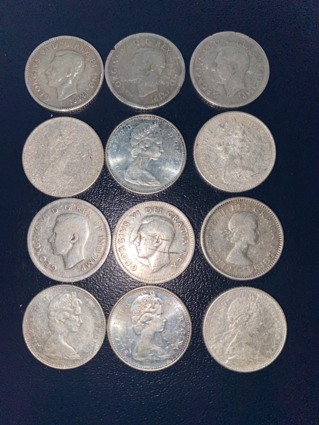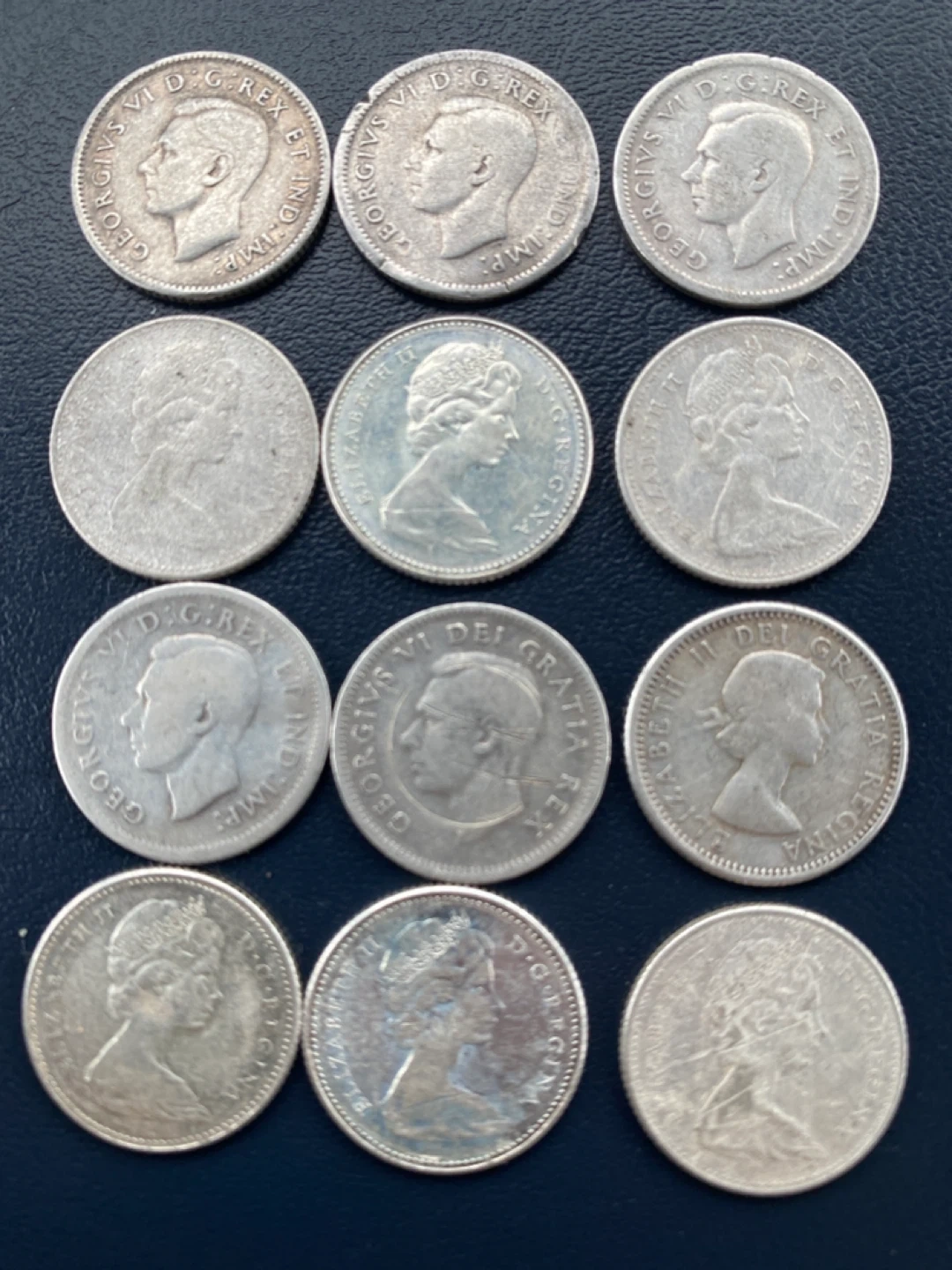 12 pieces Vintage Canadian 10 Cent silver Coins