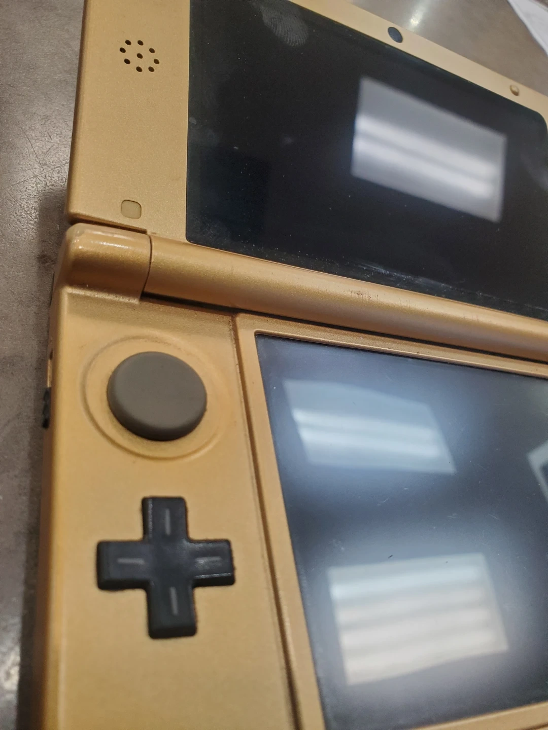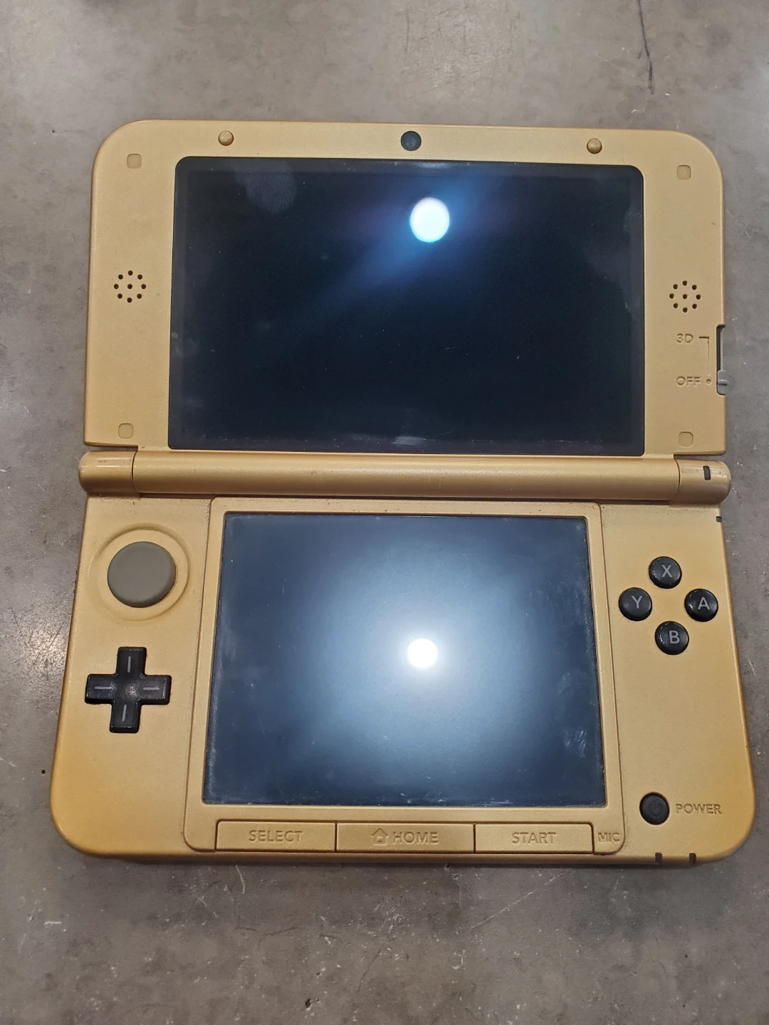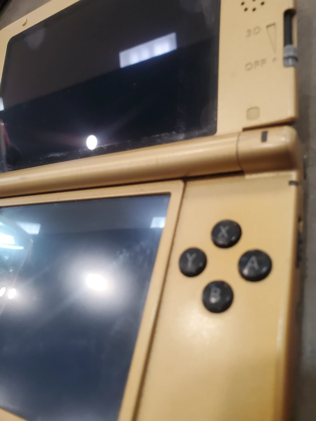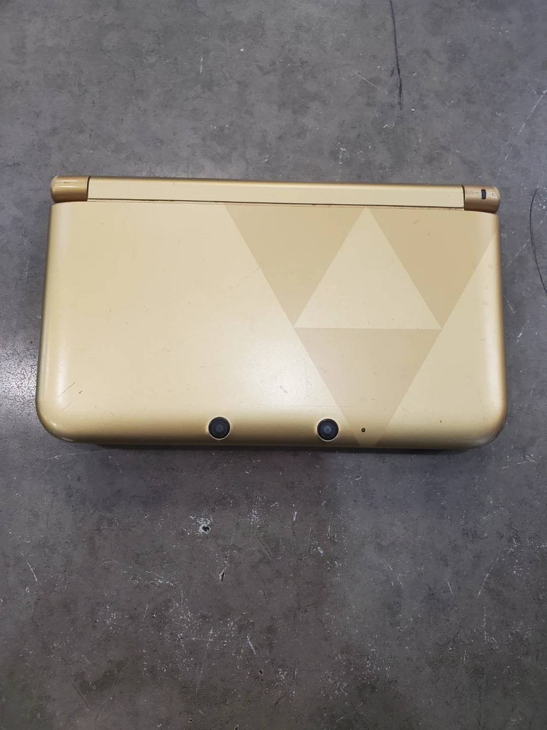 Selling a used Nintendo 3DS XL in the Zelda Edition! It's gold-coloured and shows some signs of use, but is still in good working condition. Perfect for playing your favourite 3DS games!