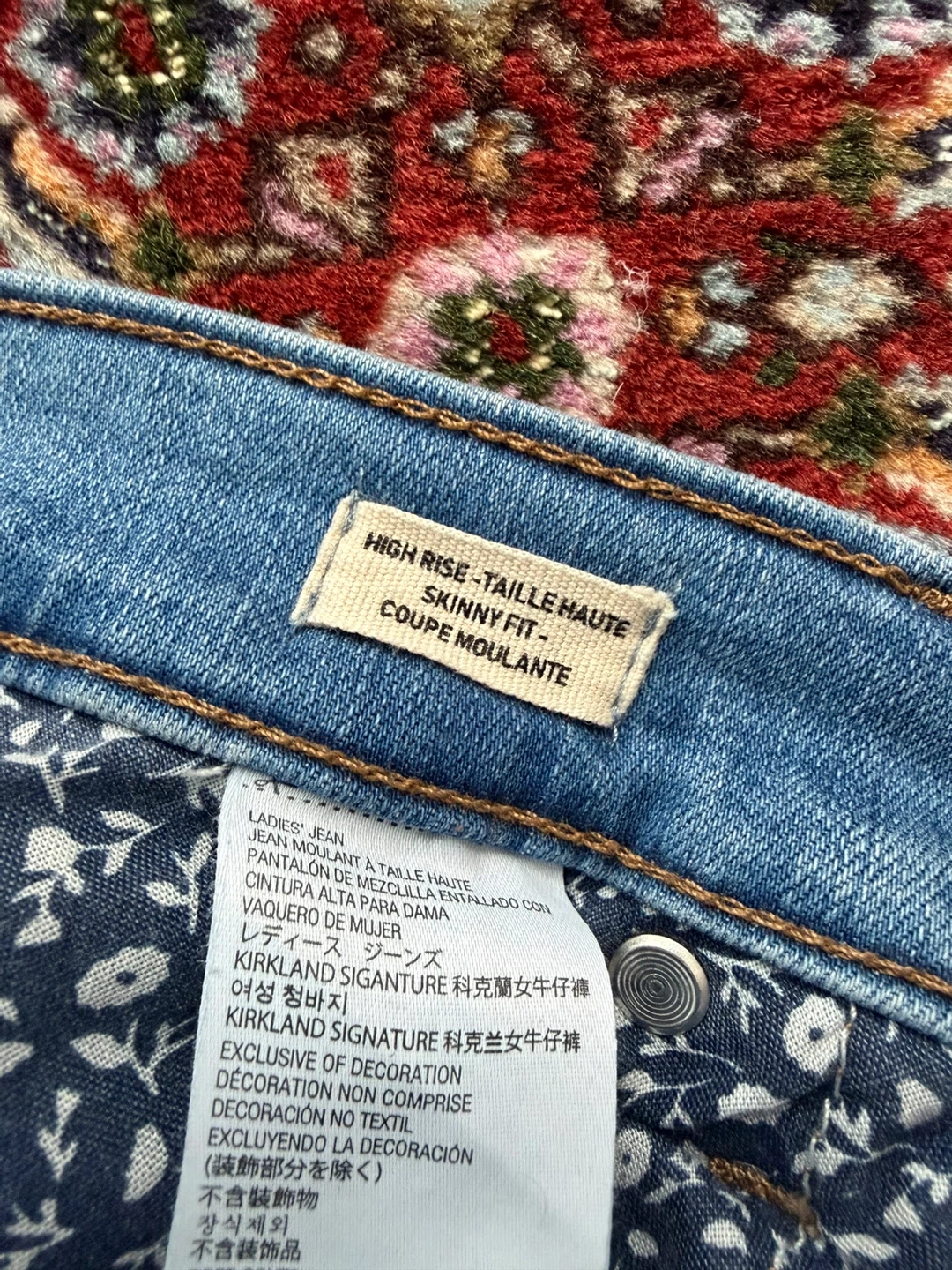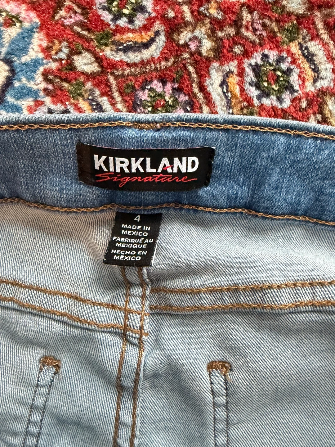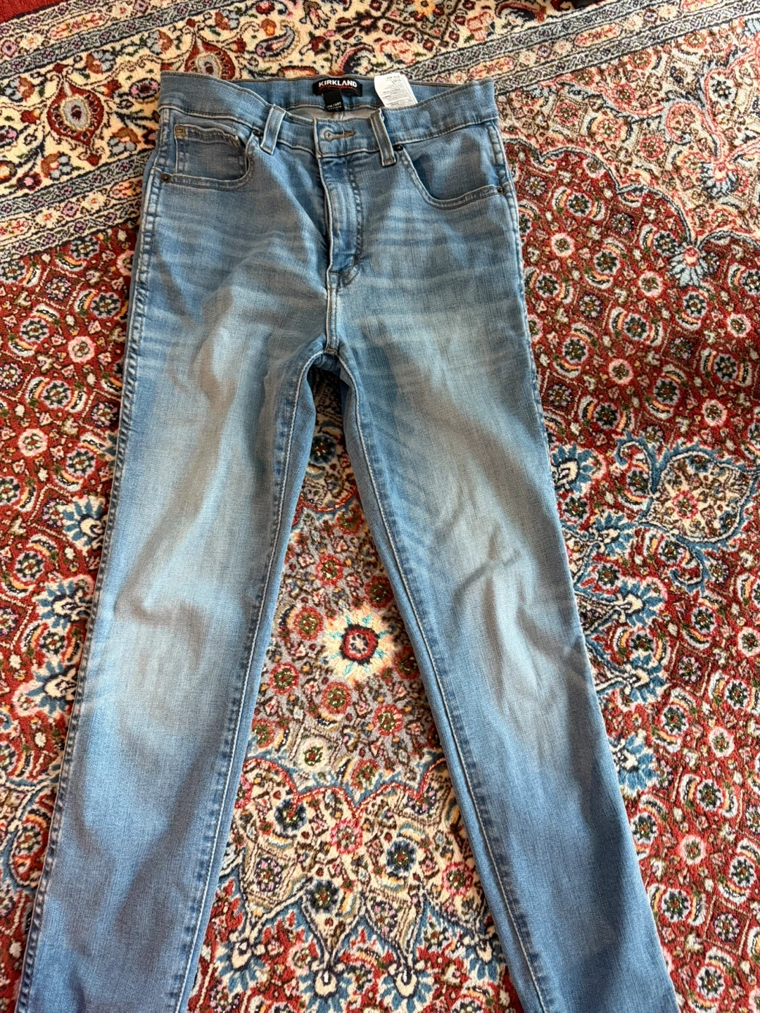 Selling a pair of Kirkland Signature jeans in size 4. They're a high-rise, skinny fit style. Great for everyday wear!