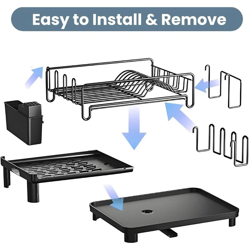 This black dish rack is made by stainless steel material with a double-layer black paint coating that is durable and does not rust. Cleaning is easy—simply rinse under the faucet.