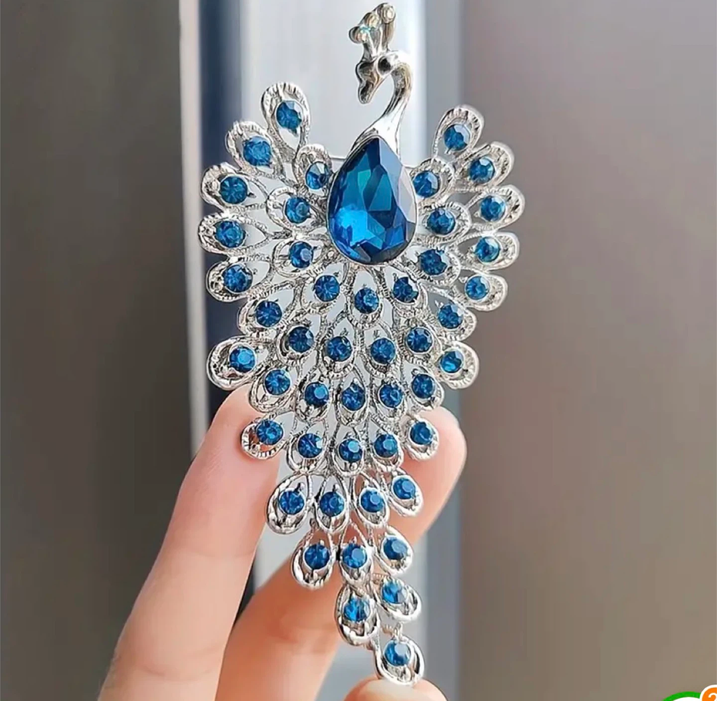 Beautiful Peacock Brooch - Silver & Blue