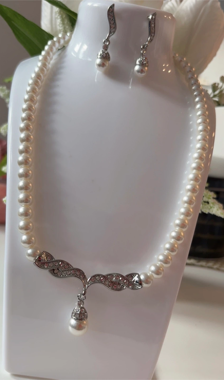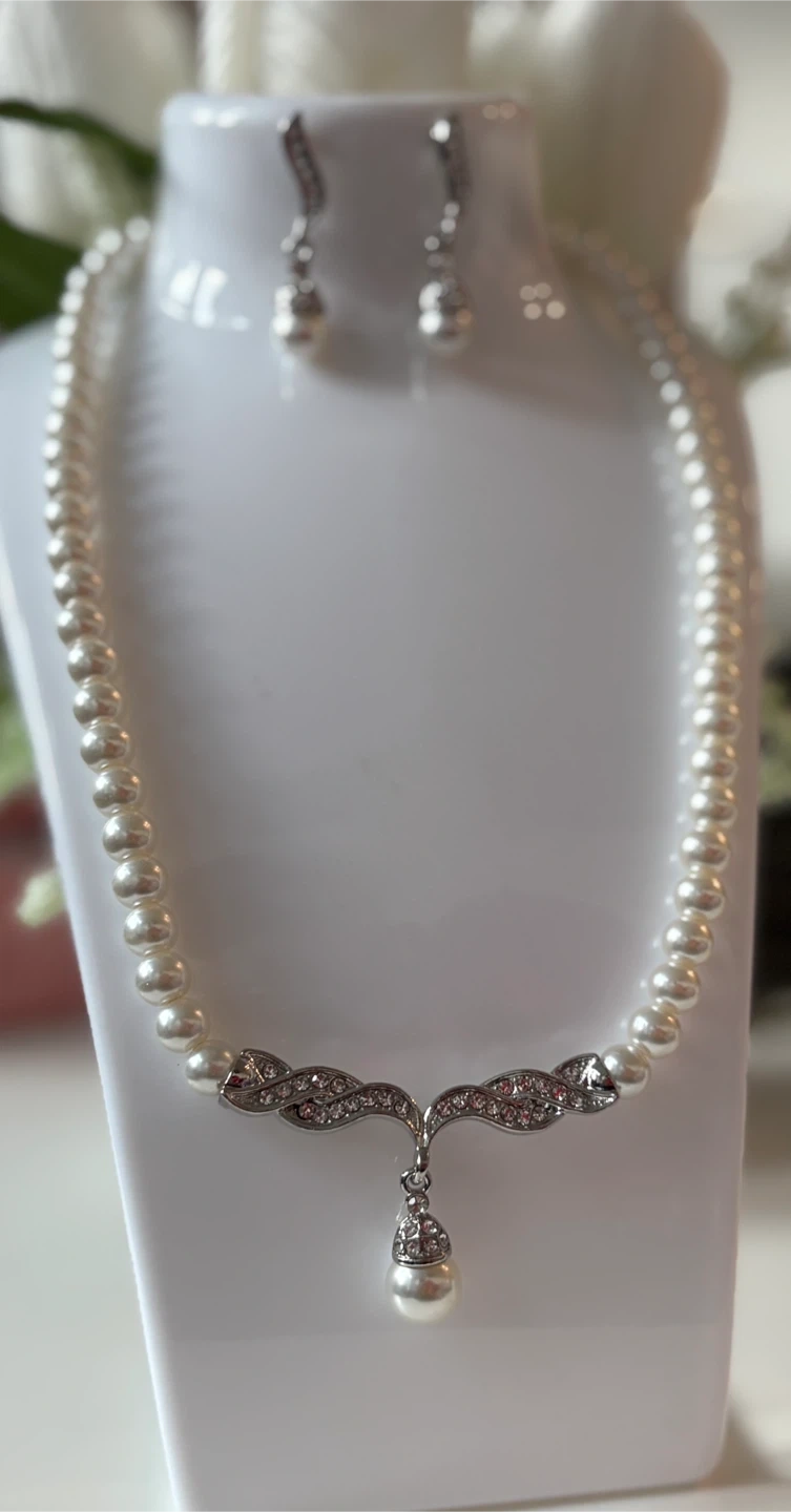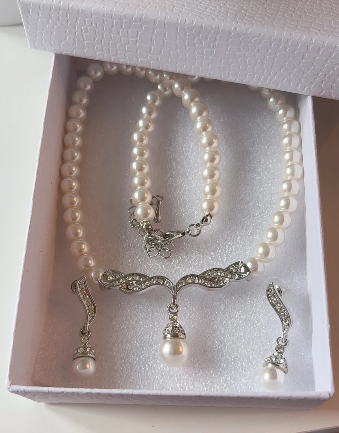 Gorgeous pearl necklace and earring set. It's a classic and elegant design that would be perfect for any occasion. The pearls have a lovely sheen!