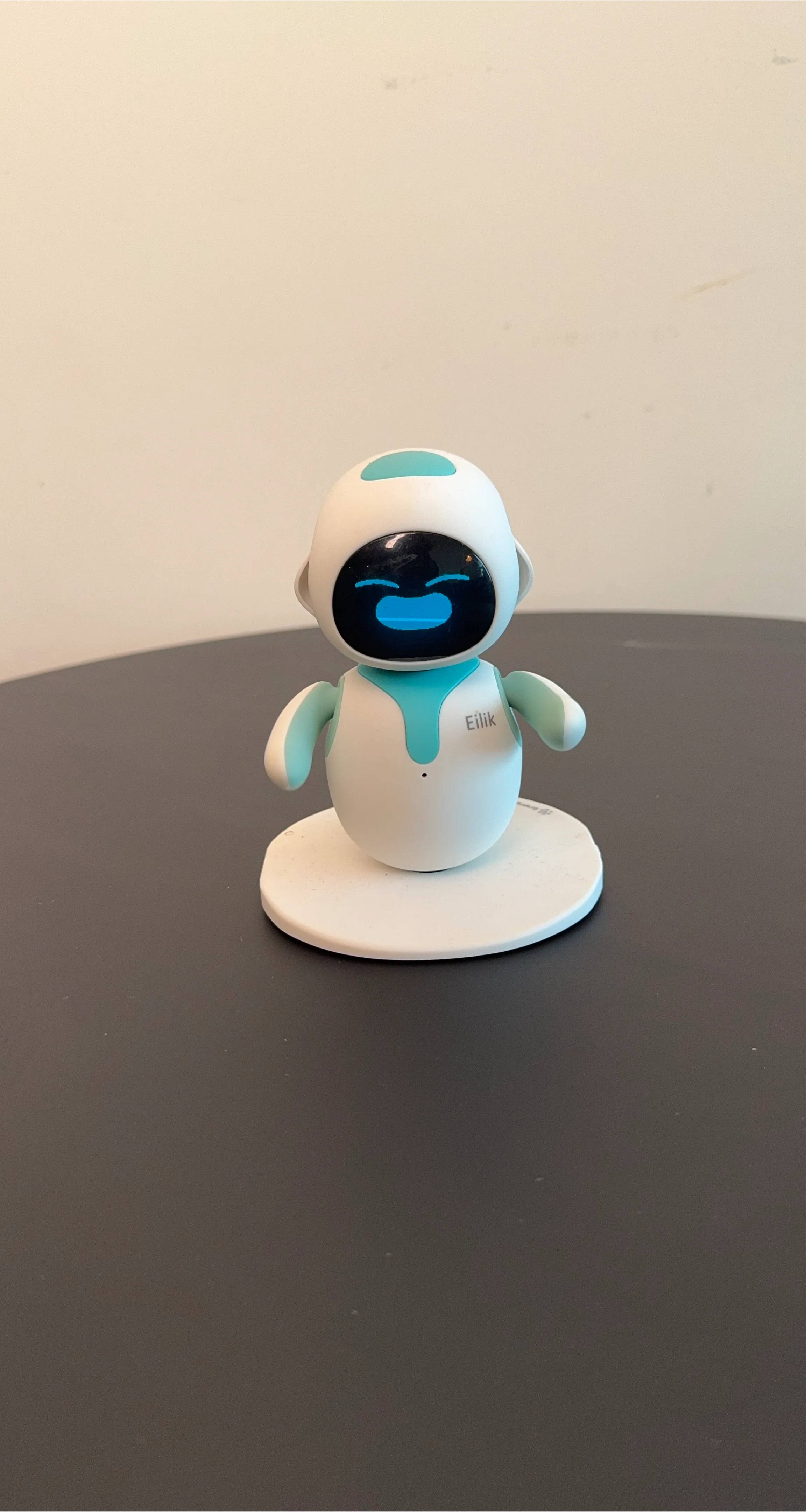 Meet Eilik, the interactive companion robot! He's white with turquoise accents and ready to be your new desk buddy. Eilik is designed to be engaging and fun, offering a unique interactive experience